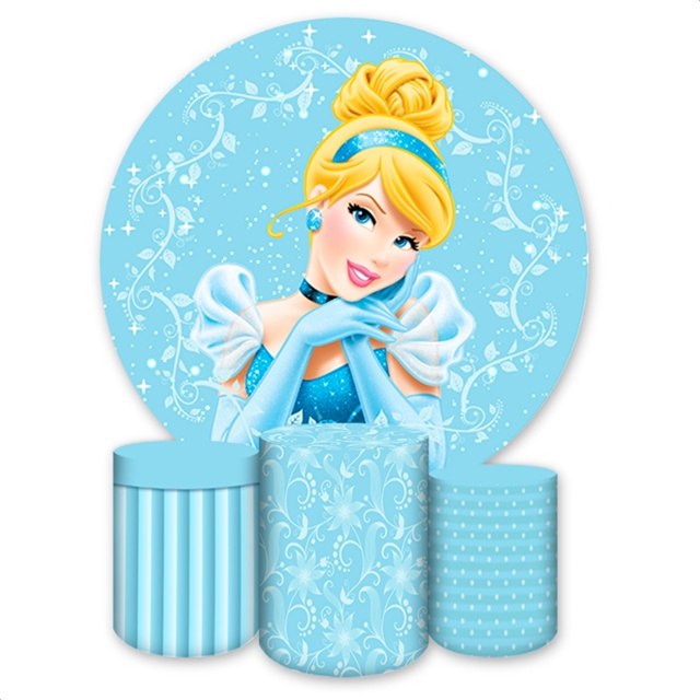 Kit Painel Redondo + Capas de Cilindro Sublimados Para Festa Tema Cinderela