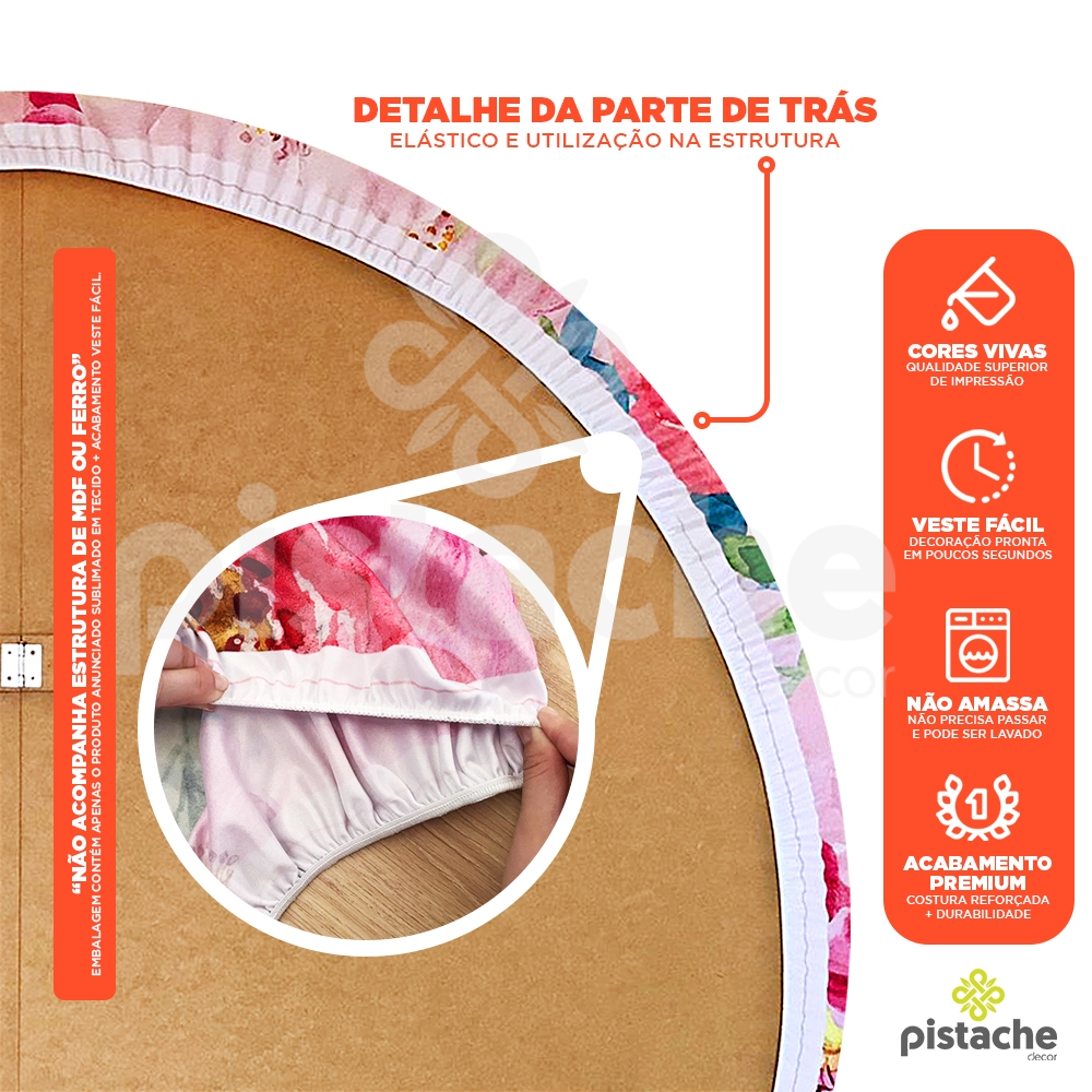 *** ATENÇÃO: NÃO FAZEMOS AJUSTES DE MEDIDA OU ARTE NAS CAPAS DE CILINDRO DESTE ANÚNCIO. VERIFIQUE AS MEDIDAS ANTES DE FINALIZAR A COMPRA *** >>>ATENÇÃO<<< NÃO ACOMPANHA ESTRUTURA/SUPORTE, VENDEMOS SOMENTE AS CAPAS EM TECIDO, SISTEMA VESTE FÁCIL!!! ----------------------------------------------------------------------------------------------------------------------- >>> PAINEL REDONDO EM TECIDO COM ACABAMENTO EM ELÁSTICO <<< UTILIZAÇÃO EM ESTRUTURAS CIRCULARES ENTRE 1,20 ATÉ 1,50 DE DIÂMETRO. >>> PAINEL NÃO POSSUI EMENDA!!! >>> MEDIDAS DO TRIO DE CAPA PARA CILINDRO: TAMANHO P: (A) Altura: 48cm // (D) Diâmetro: 39cm // (C) Circunferência: 122cm TAMANHO M: (A) Altura: 60cm // (D) Diâmetro: 45cm // (C) Circunferência: 141cm TAMANHO G: (A) Altura: 80cm // (D) Diâmetro: 51cm // (C) Circunferência: 160cm Agora sua festa está completa!!! Graças ao Kit de Capas para Cilindro e Painéis Redondos em Tecido da Pistache Decor!!! Você já conhece nossa qualidade na confecção dos painéis de festa e também poderá contar com a gente nas capas de cilindro em tecido sublimado da sua decoração. DETALHES DO TRIO DE CAPA PARA CILINDRO E PAINÉIS REDONDOS EM TECIDO: + Tecido Malha New (Que estica e não amassa). + Tecido Leve com ótimo caimento + Gramatura: 140g/m de excelente qualidade. + Composição do Tecido: 95% Poliéster e 5% de Elastano. + Elástico cuidadosamente costurado na base dos cilindros e ao redor do painel. + Acabamento em overloque evitando que o cilindro desfie. BENEFÍCIOS DAS CAPAS DE CILINDRO E PAINÉIS REDONDOS PISTACHE DECOR: + Sistema "Veste Fácil". Agilidade na instalação + Cores vivas que não desbotam + Sua decoração fica pronta em poucos minutos + Estica e não amassa. + Pode ser lavado quantas vezes for necessário + Não reflete luz, por ser feito em tecido PRODUÇÃO E ENVIO: - TODOS OS PEDIDOS ACOMPANHAM NOTA FISCAL. - O trio de capas é enviado em até 1 DIA ÚTIL após pagamento aprovado. - Possui garantia contra defeito de fabricação. - O envio é feito em embalagem individual e com todo carinho. - Os prazos para entrega variam de acordo com o seu CEP, não nos responsabilizamos pelos prazos dados pela Plataforma. *** Tem alguma dúvida antes de finalizar sua compra? Envie uma mensagem para nós que ajudaremos você! Temos vários anos de experiência no mercado em itens sublimados. ***