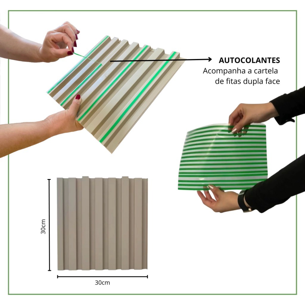 Kit Painel Ripado 30x30 - kit 11 peças (1m²) - 11 Cores Antimpacto e Autocolante Direct Borrachas