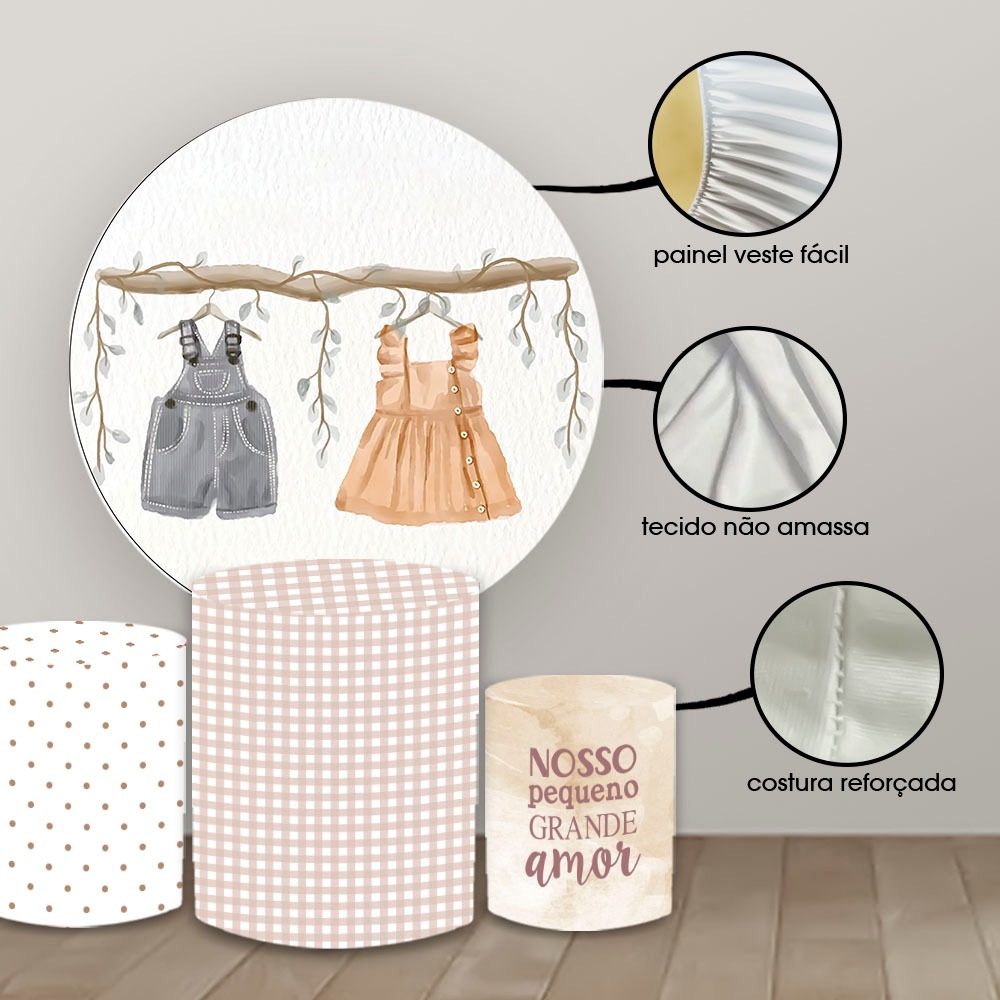 Kit Painel Sublimado + Capas de Cilindros vest facil Tema Chá Revelação roupinhas decoração aniversario festas