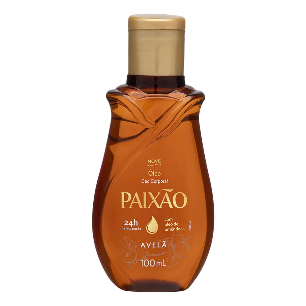 O kit contém 1 Óleo Corporal e 1 Loção hidratante Paixão Avelã. Possuem ação desodorante, com o nobre óleo de amêndoas e garante a hidratação da pele por 24 horas. A doce fragrância é composta por uma mistura de frutas vermelhas como framboesa, amora silvestre, mirtilo e morango frescos, que são misturadas a um buquê floral cremoso com rosa e jasmim. Seu fundo tem a combinação de notas caramelizadas, doces e amadeiradas. De uso diário, é indicado para todos os tipos de pele.