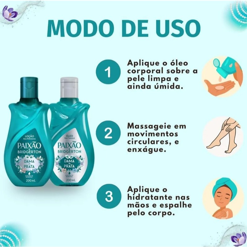 Kit Paixão & Bridgerton Dama de Prata: Óleo Corporal+ Hidratante Corporal + Hidratante de Mãos