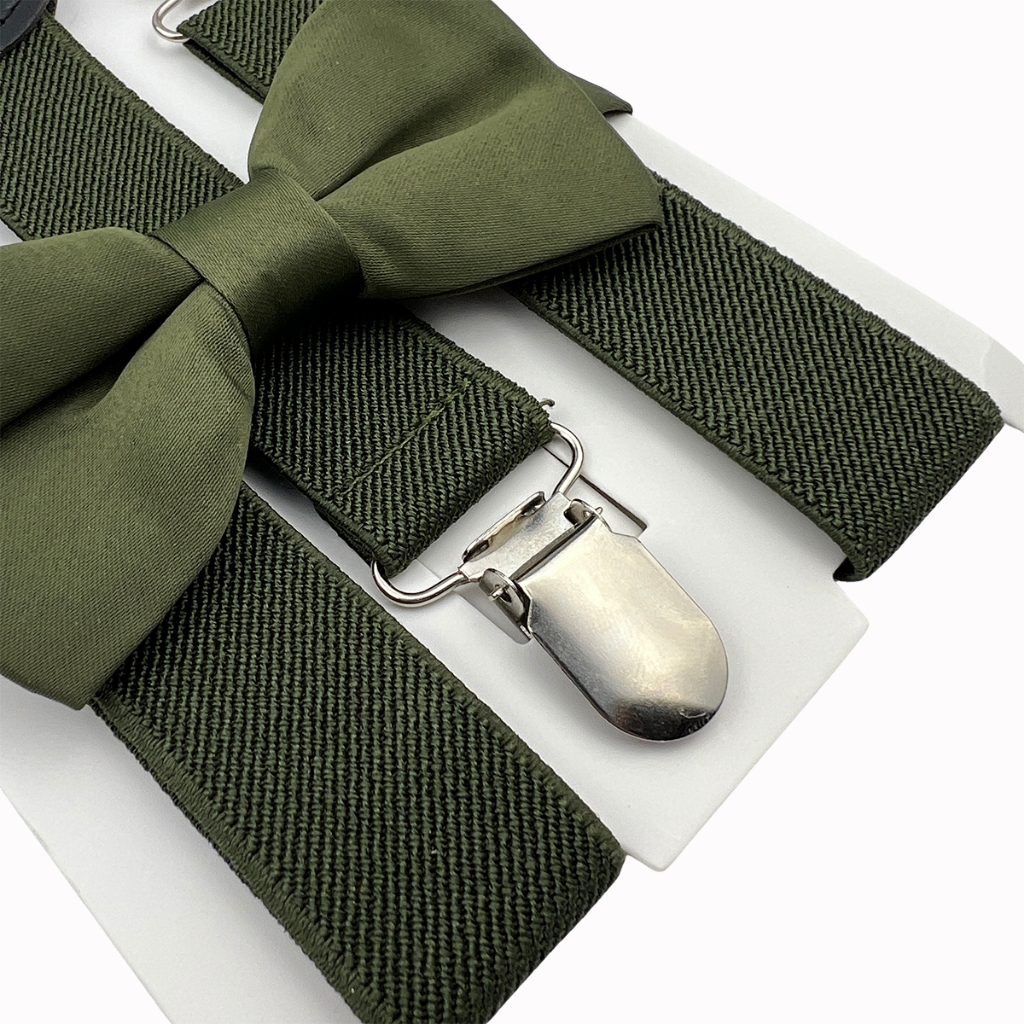 Kit Pajem Suspensório Verde Oliva e Gravata Borboleta Infantil