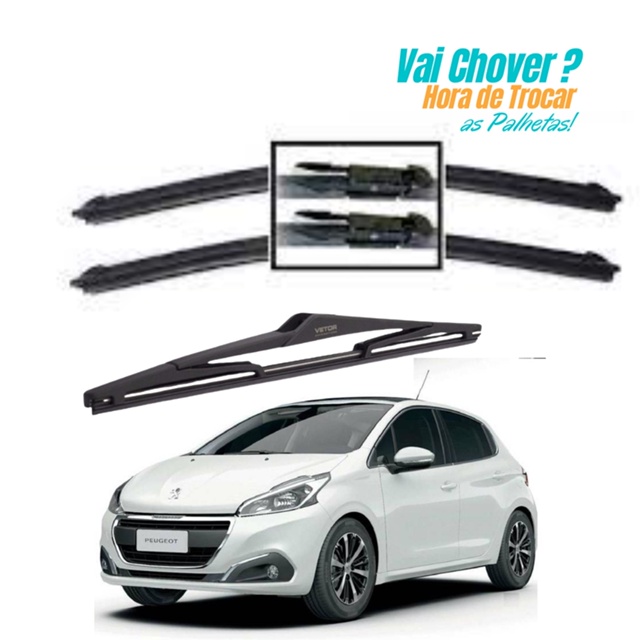 Kit Palheta Limpador Parabrisa Dianteiro + Traseiro Peugeot 208 2012 á 2020