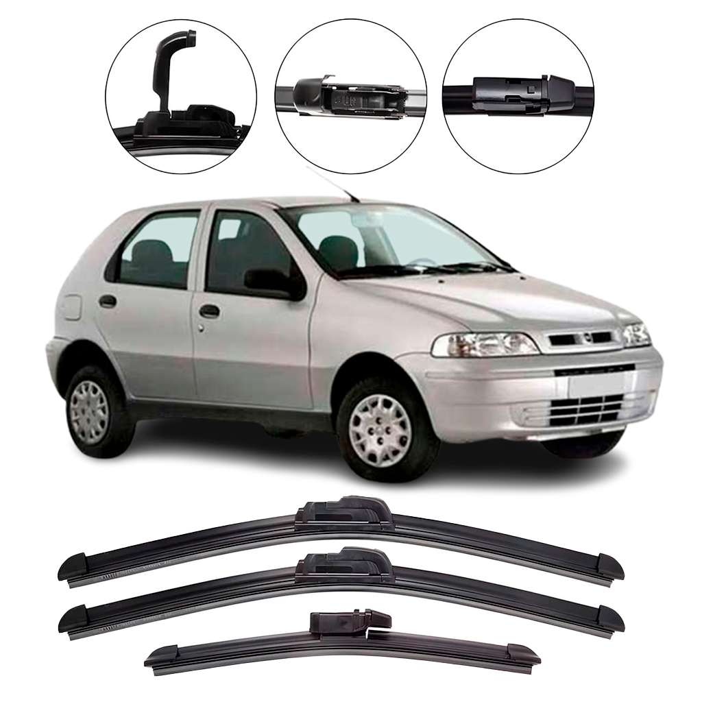 Kit Palhetas para Limpador Parabrisa Dianteiro e Traseiro para Fiat Palio G2 2001 até 2007