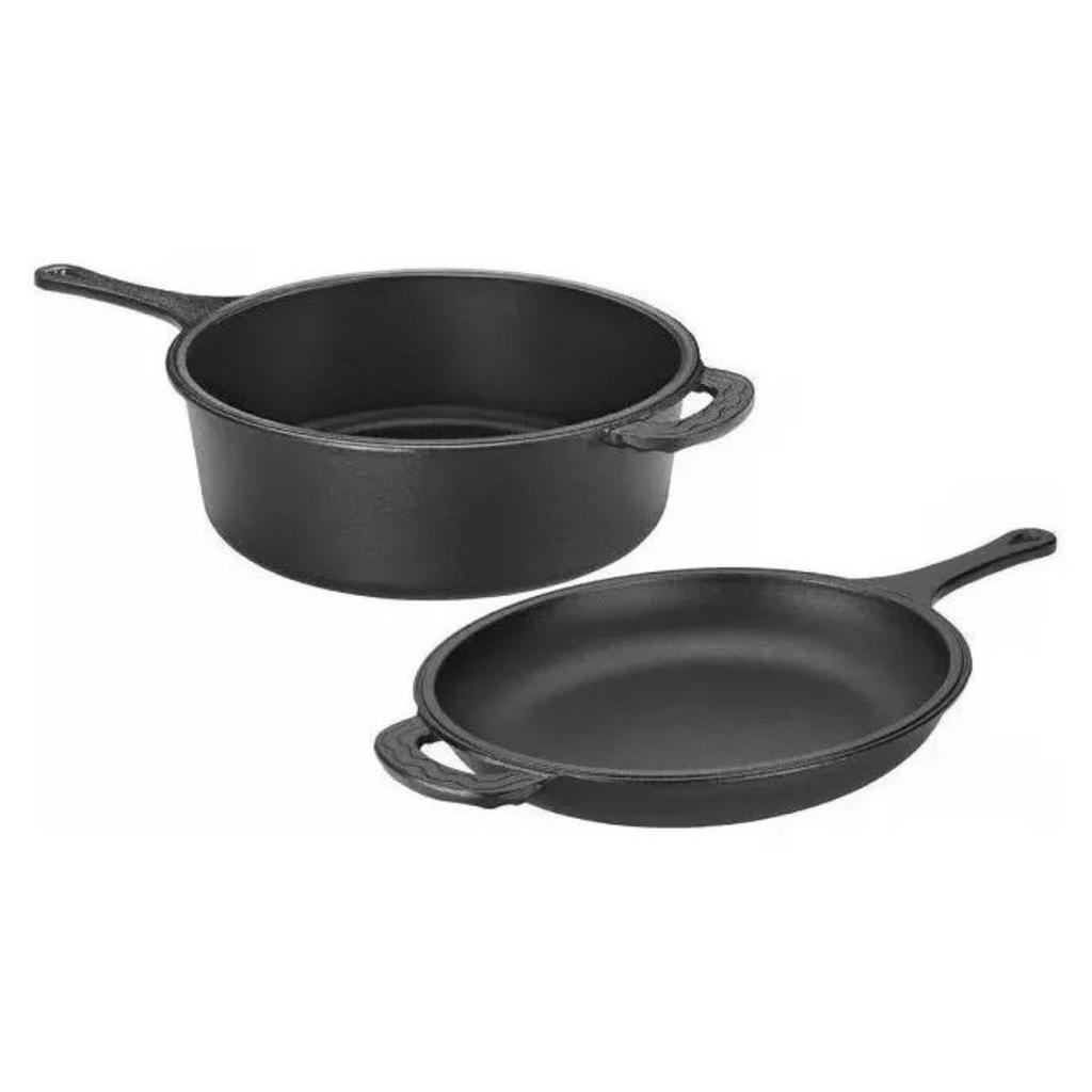 Kit Panela de Ferro Fundido Caçarola 3,5L + Frigideira 1,5L Panela Mineira