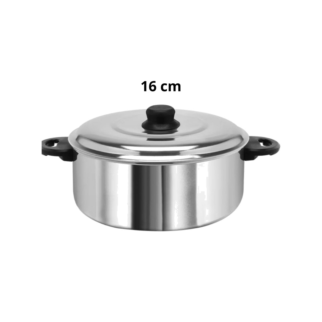 Panelas ideias para fazer arroz!Mais praticidade para sua vida!! Esse kit contém: ; 01 Caçarola com alças e tampa, diâmetro 18cm; Altura 10,2cm01 Caçarola com alças e tampa, diâmetro 16cm; Altura 9,7cm;01 Caçarola com alças e tampa, diâmetro 14cm; Altura 8,5,cm;01 (uma) EspatulaESPESSURA 1.10 MM Qualquer coisa estamos à disposição no chat!