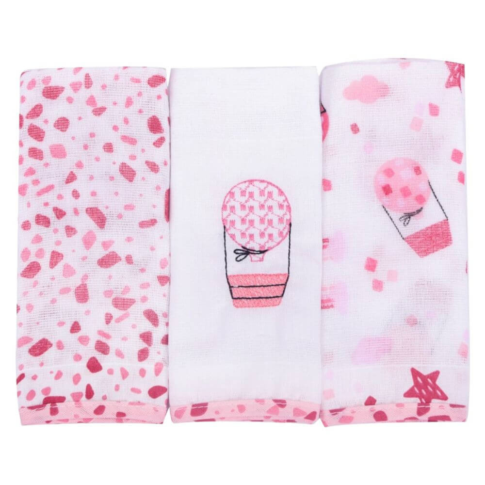 Kit Pano De Boca Bebê Minasrey Loupiot Capadócia - 03 Peças O kit de pano de boca Minasrey da coleção Loupiot Capadócia é composto por 03 paninhos é confeccionada em tecido 100% algodão, proporcionando um toque macio e confortável. Seu modelo possui estampa bordada e prendedor de chupeta, evitando que a mesma caia no chão ou se perca.As fraldinhas, toalhinhas e paninho de boca são macias e ideais para secar a "babinha" dos bebês ou limpar sua boquinha durante as refeições.Informações Adicionais: Tamanho: Único Cores: Rosa Referência: 357405 Medidas: 32cm x 32cm Marca: Minasrey