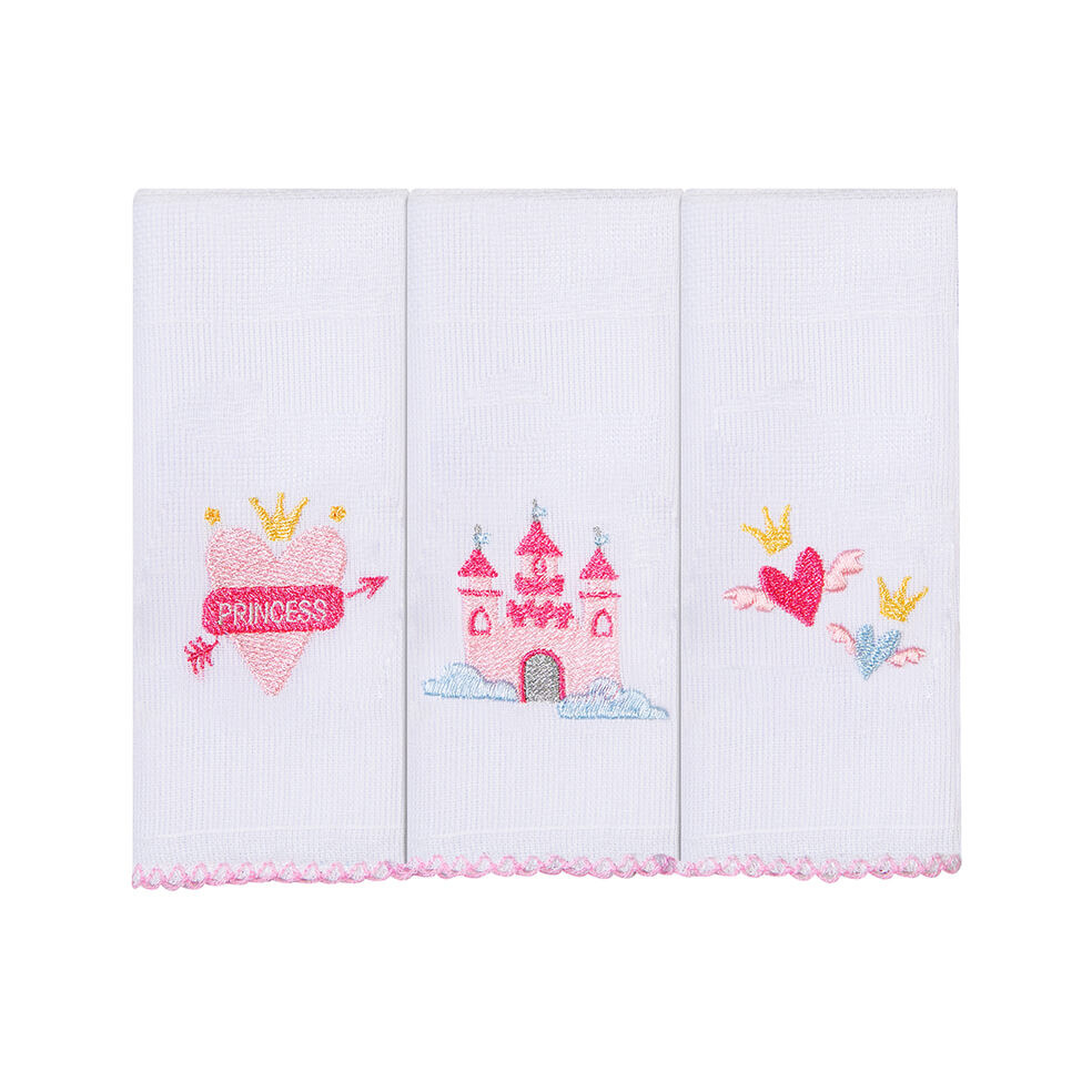 Kit Pano De Boca Bordados Papi Castelo - 3 Peças