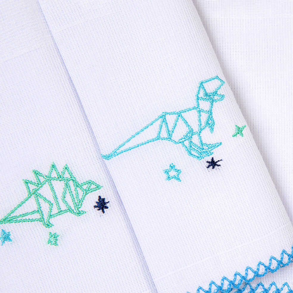 Kit Pano De Boca Bordados Papi Origami - 3 Peças O Kit Pano de Boca Bordados Papi oferece praticidade e charme para os cuidados diários com o seu bebê. Composto por 3 unidades, cada pano de boca é confeccionado em 100% algodão, proporcionando suavidade e conforto para a pele delicada do bebê. O acabamento de picueta em um dos lados adiciona um toque de delicadeza, enquanto o bordado personalizado confere um charme especial a cada peça. Além de sua função principal para higiene, os panos de boca bordados podem ser utilizados como peças decorativas no enxoval do bebê ou como pequenos paninhos de apoio durante a amamentação. Informações Adicionais:Tamanho: Único Cor: Azul Referência: 1552-4022 Medidas aproximadas: 32cm x 32cm Marca: Bordados Papi