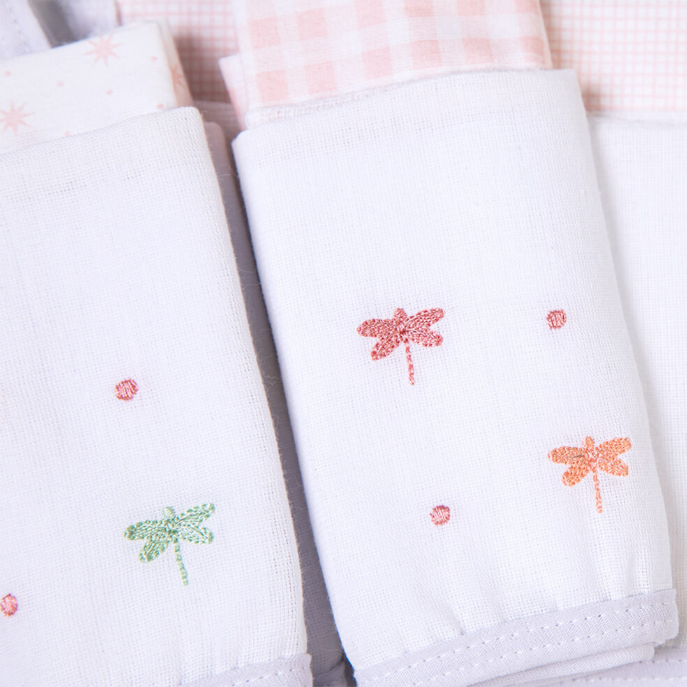 Kit Pano De Boca Bordados Papi Prendedor Libélula - 3 Peças O Kit Pano de Boca Bordados Papi é um conjunto encantador e funcional, ideal para os cuidados diários com o seu bebê. Composto por 3 unidades, cada pano de boca é confeccionado em tecido 100% algodão, garantindo suavidade ao toque e conforto para a pele sensível do bebê. O viés de malha conta com um prático prendedor de chupeta, proporcionando praticidade e evitando que a chupeta se perca. O detalhe de faixa estampada e o bordado personalizado adicionam um toque charmoso e personalizado a cada peça. Além de sua função tradicional para higiene, os panos de boca podem ser utilizados como itens decorativos no enxoval do bebê. O prendedor de chupeta integrado é uma solução conveniente para manter a chupeta sempre à mão durante os passeios. Informações Adicionais:Tamanho: Único Cor: Rosa Referência: 4928-4003 Medidas aproximadas: 40cm x 40cm Marca: Bordados Papi
