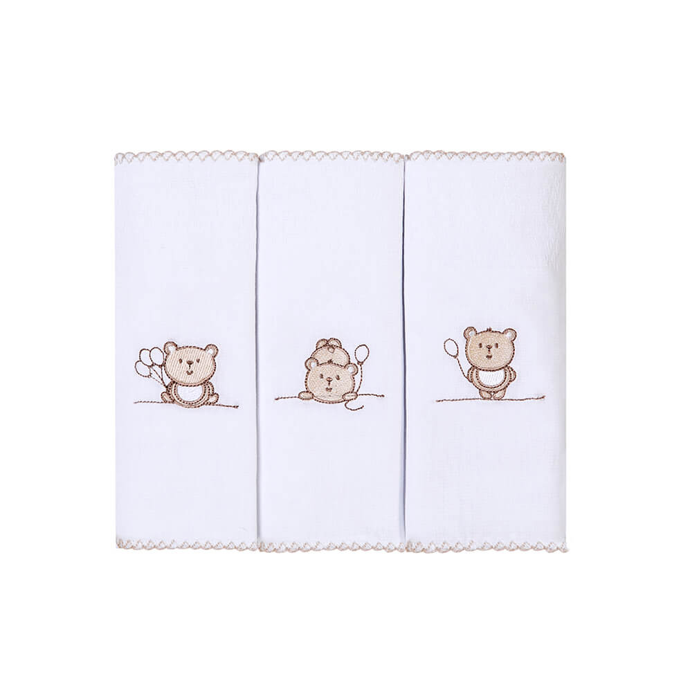 Kit Pano De Boca Bordados Papi Ted Balão - 3 Peças