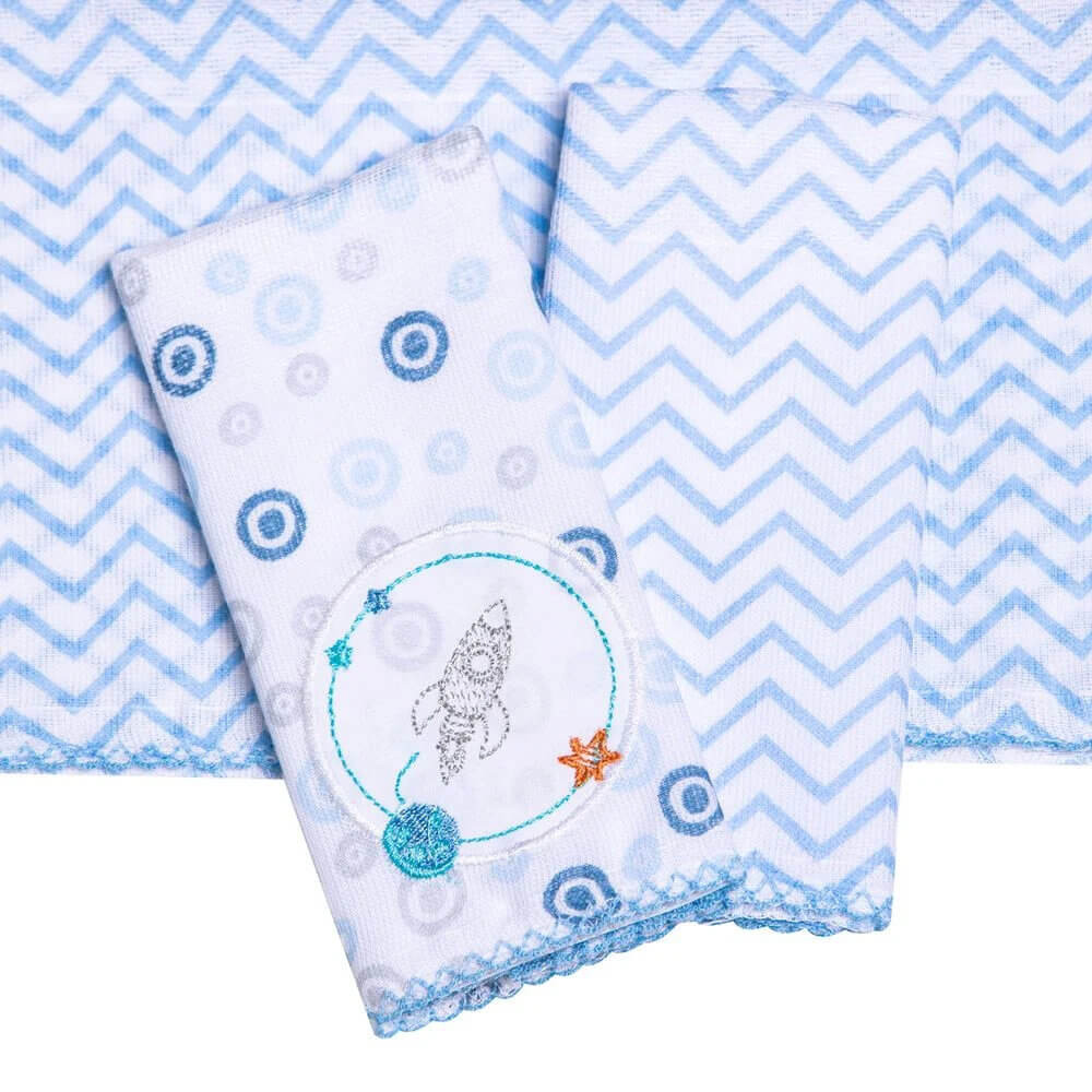 Kit Pano De Boca Estampado Papi Bordados Planetas - 03 Peças
