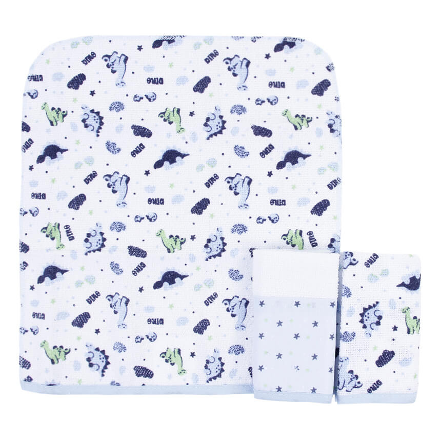 Kit Pano De Boca Gijo Felpa Estampa Dino - 03 Peças
