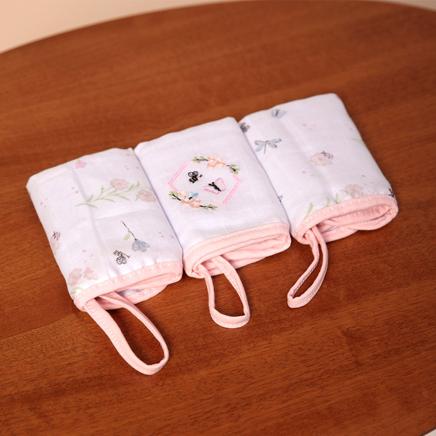 Kit Pano De Boca Papi Bordado Com Prendedor Flores - 3 Peças