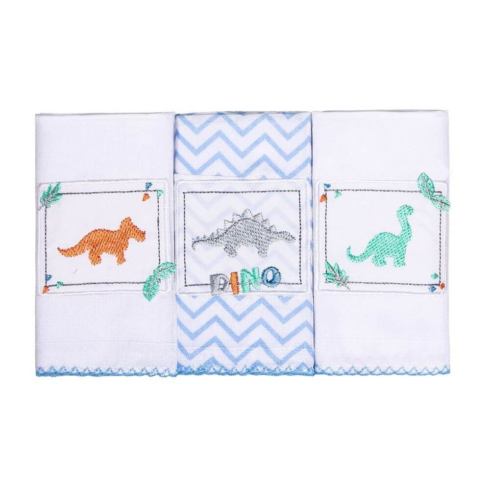 Kit Pano De Boca Papi Bordados Karinho Dino - 03 Peças