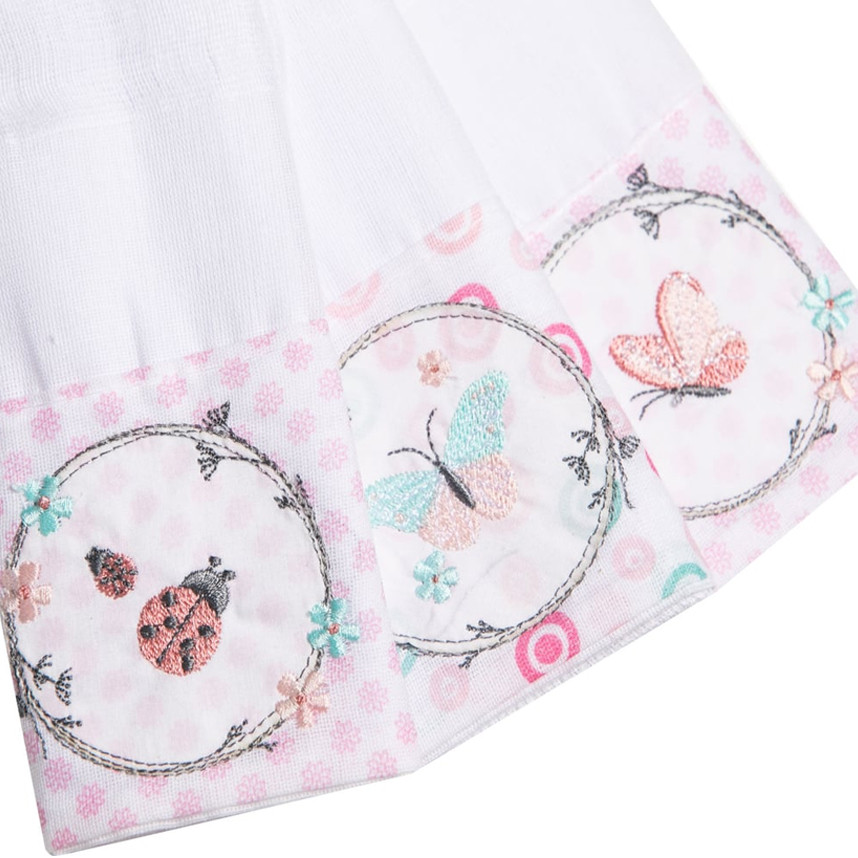 Kit Pano De Boca Papi Bordados Karinho Faixa Borboleta - 03 Peças