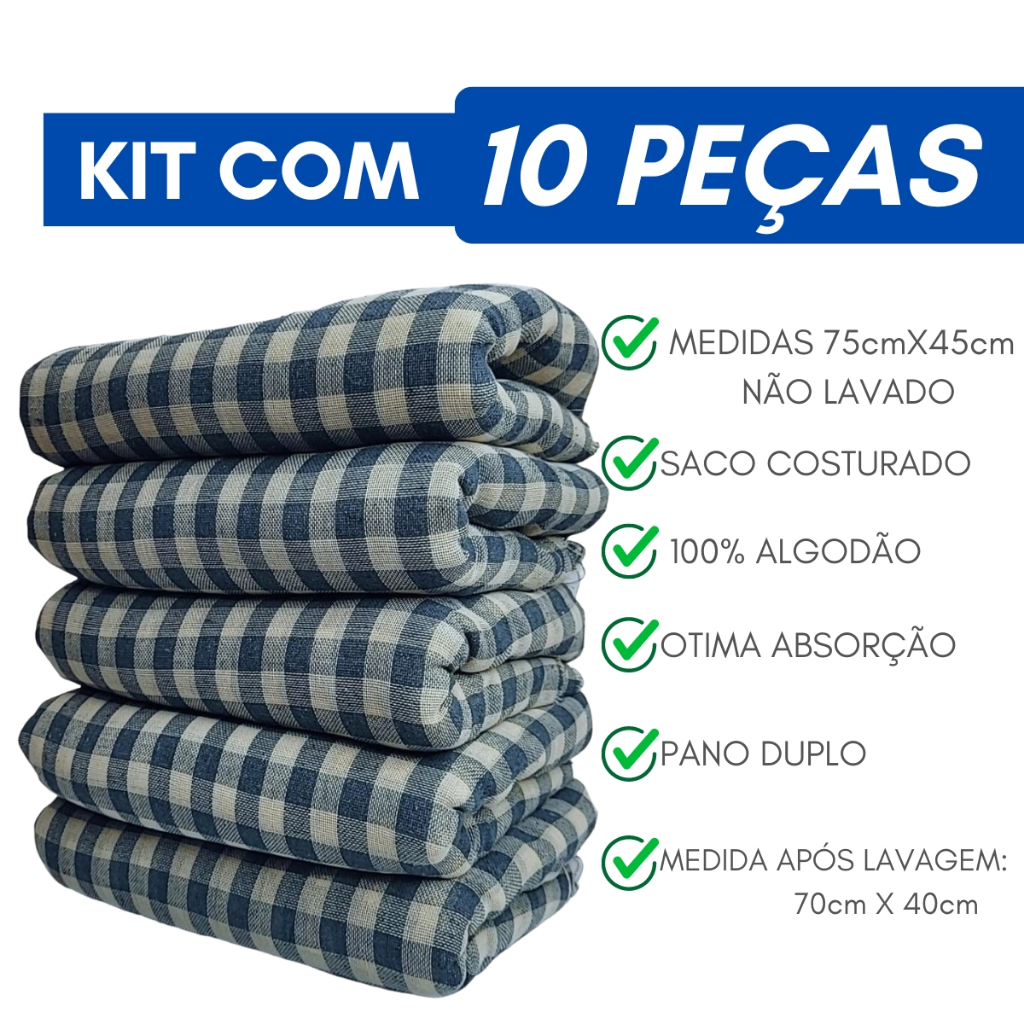 Kit Pano de Chão 75x45cm 100% Algodão Saco Duplo Costurado Alta Absorção Limpeza Piso Cozinha