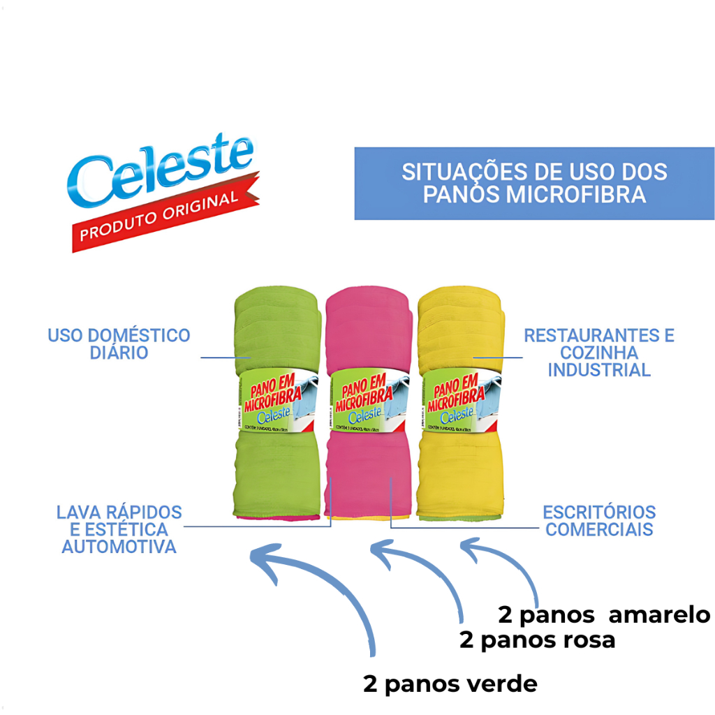 Pano de Chão em Microfibra Celeste: Eficiência e Qualidade Apresentamos o Pano de Chão em Microfibra Celeste, a escolha perfeita para manter seus ambientes limpos e impecáveis. Nossos panos de microfibra são fabricados com materiais de alta qualidade, oferecendo uma série de benefícios para suas tarefas de limpeza. Super Absorção para Resultados Rápidos Com uma capacidade de absorção excepcional, nossos panos de chão em microfibra agilizam a limpeza, proporcionando resultados rápidos e eficazes. Você não precisa se preocupar com fiapos de tecido desagradáveis, pois nossos panos são projetados para não soltar fiapos. Cuide dos Diferentes Tipos de Pisos Diferentes tipos de pisos requerem cuidados específicos para evitar riscos e manchas. Com o Pano de Chão em Microfibra Celeste, você pode confiar em um desempenho superior em uma variedade de superfícies, incluindo: - Pisos de Porcelanato - Pisos de Madeira - Pisos de Cimento Queimado - Eletrodomésticos - Fogões (inclusive por indução) - Mesas de Madeira ou Vidro - Vidros e Vidraças Microfibra Avançada para Limpeza Eficiente Nossos panos de microfibra utilizam uma tecnologia avançada que captura poeira, sujeira e até as menores partículas de forma surpreendente. Isso garante que suas superfícies fiquem verdadeiramente limpas e sem resíduos. Modo de Uso Simples Utilizar o Pano de Chão em Microfibra Celeste é fácil. Basta retirá-lo da embalagem, lavá-lo na máquina, deixá-lo secar à sombra, e ele estará pronto para uso. Certifique-se de evitar superfícies ásperas e não utilize alvejante. Mantenha seus ambientes limpos e brilhantes com a qualidade e eficiência dos Panos de Chão em Microfibra Celeste. Adquira já o seu e experimente a diferença que um pano de qualidade pode fazer em suas tarefas de limpeza! Conteúdo da embalagem - 2 embalagens com 3 unidades cada - Medida de 48x58cm