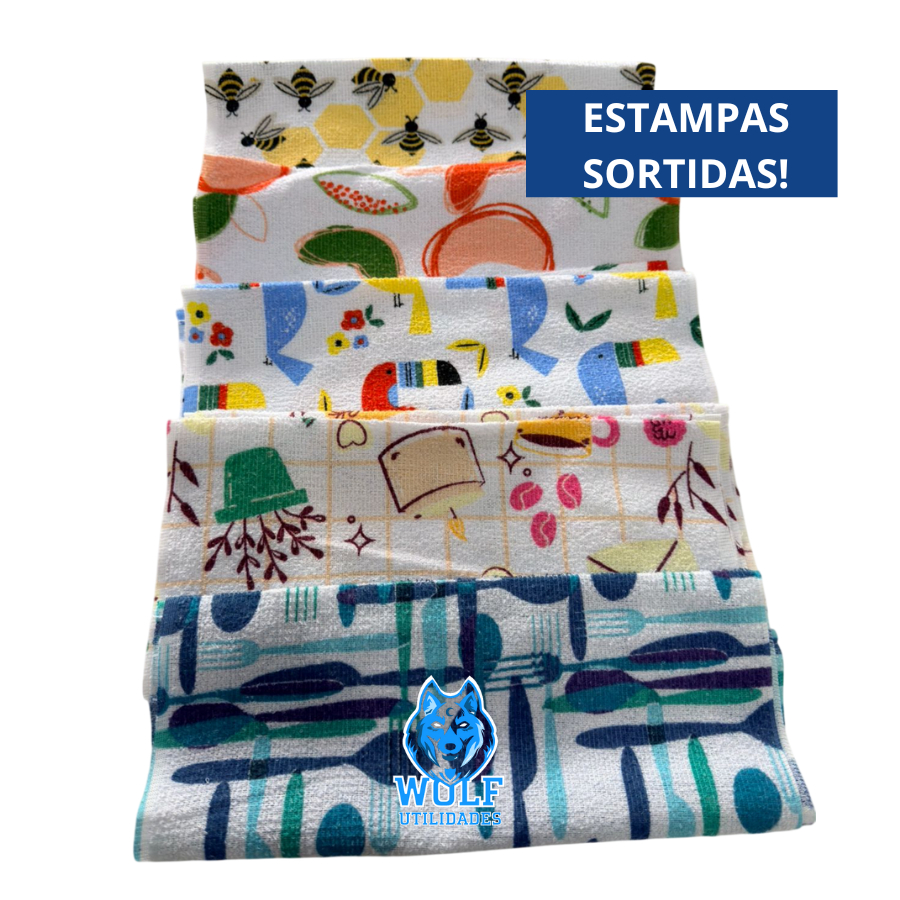 Kit Pano De Prato Estampado Felpudo Atoalhado Absorvente