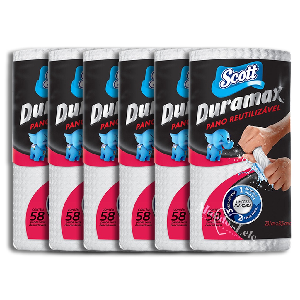 Pano Multiuso Duramax Scott: Faça a limpeza da sua casa de maneira muito mais prática e higiênica! O Duramax Scott é um lenço semi descartável altamente resistente, ideal para a limpeza de diversas superfícies. Oferece máxima absorção, secando na metade do tempo que os panos comuns, além de soltar a sujeira mais facilmente. - Pano reutilizável e lavável - Mais abosrvente e resistente do que papel toalha - Secagem rápida - Não solta fiapos - Prático e higiênico - Contém 58 panos com 20, 1 cm x 21, 5 cm cada.