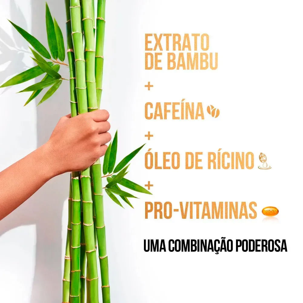 O Kit Pantene Bambu Shampoo 400ml + Condicionador 175ml + Creme Para Pentear 240g foi desenvolvido para fortalecer os fios e estimular o crescimento saudável, proporcionando cabelos mais longos, resistentes e com movimento natural. Sua fórmula poderosa combina o exclusivo blend de Pro-Vitaminas Pantene com extrato de bambu, óleo de rícino e cafeína, ingredientes reconhecidos por estimular o fortalecimento capilar e melhorar a resistência dos fios desde a raiz até as pontas. Benefícios:Fortalece os fios e ajuda no crescimento saudável.Reduz a queda causada por quebra.Fórmula rica em bambu, óleo de rícino e cafeína.Nutrição leve, ideal para uso diário.Creme para pentear com proteção térmica e desembaraço instantâneo.Cabelos mais fortes, longos e com brilho natural. Modo de usar:Shampoo: Aplique nos cabelos molhados e massageie suavemente o couro cabeludo. Enxágue.Condicionador: Aplique no comprimento e pontas, deixe agir por alguns minutos e enxágue.Máscara Capilar: Aplique a máscara nos fios úmidos, deixe agir por 3 a 5 minutos e enxágue. Sobre a marca: Presente no mercado global há mais de 40 anos, Elseve, marca da L'Oréal Paris, é sinônimo de inovação em tratamento capilar. Seus produtos são desenvolvidos com tecnologia de ponta e ingredientes poderosos para oferecer soluções eficazes para todos os tipos de cabelo. Com linhas icônicas e resultados comprovados, Elseve combina ciência e beleza para revelar o melhor dos seus fios em cada aplicação.