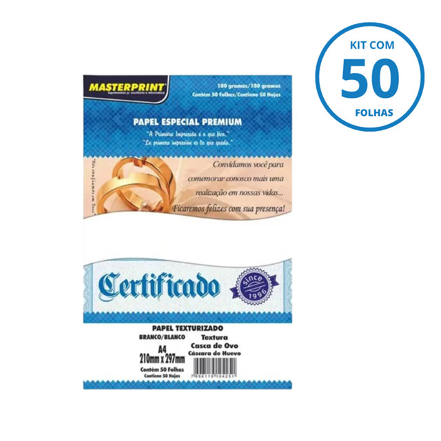 Kit Papel Branco Premium Casca de Ovo 180g A4 - MASTERPRINT Kit:Com 50
