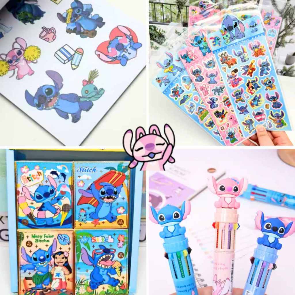 Kit Papelaria Stitch Kawaii Adesivos Caneta Multicor Caderno Régua Lápis Apontador Presente Criativo Fofa