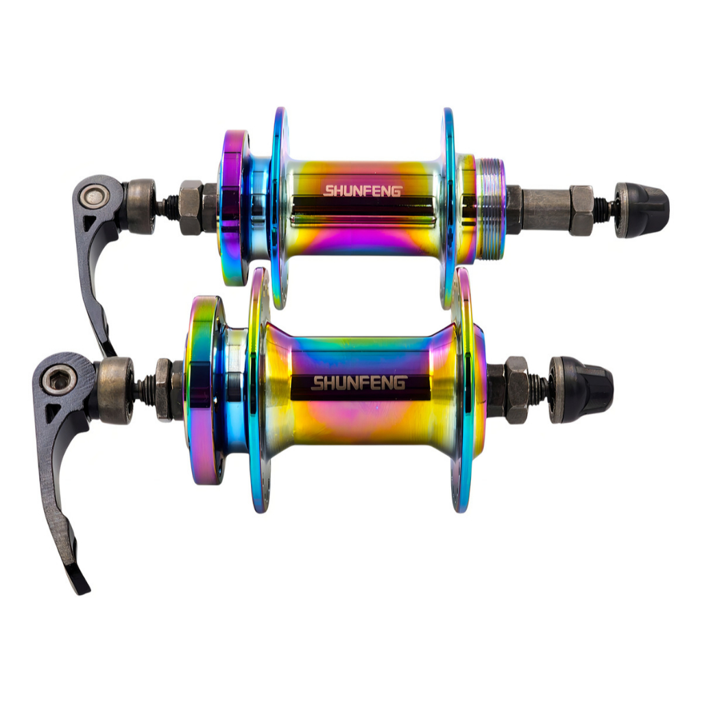KIT CUBOS E CATRACA 7V Adicione estilo e desempenho à sua bike com o Par de Cubos Shunfeng na incrível cor "Camaleão", que se destaca pela sua beleza única e arrojada. Características principais: Material premium: Fabricado em alumínio resistente e leve. Rolamento de esfera: Garante um giro suave e eficiente. Compatível com sistemas de roda livre. Freios a disco: Compatível com sistemas mecânicos ou hidráulicos. Padrão 36 furos (36f): Ideal para quem busca robustez e segurança. Eixo de blocagem: Para uma instalação prática e rápida. Peso: Cubo dianteiro: 260g | Cubo traseiro: 310g. Este par de cubos une design inovador e qualidade superior, sendo a escolha ideal para quem quer personalizar sua bicicleta com uma aparência moderna e um desempenho excepcional. CATRACA: Se você está em busca de um desempenho confiável e versátil para sua bicicleta, a roda livre de 7 velocidades na cor “Camaleão” é a escolha perfeita. Compatível com cubos de rosca, esta roda livre é fácil de instalar em sua bicicleta existente. Feita com aço de alta qualidade, ela é robusta e durável, pronta para enfrentar trilhas desafiadoras e aventuras ao ar livre. Características: Marca: ShunFeng Modelo: Roda livre 7V 14x34D - 7 velocidades; - 14x34t Escalonamento: 14-16-18-20-22-24-34 Peso aproximado: - 470g Material: - Aço