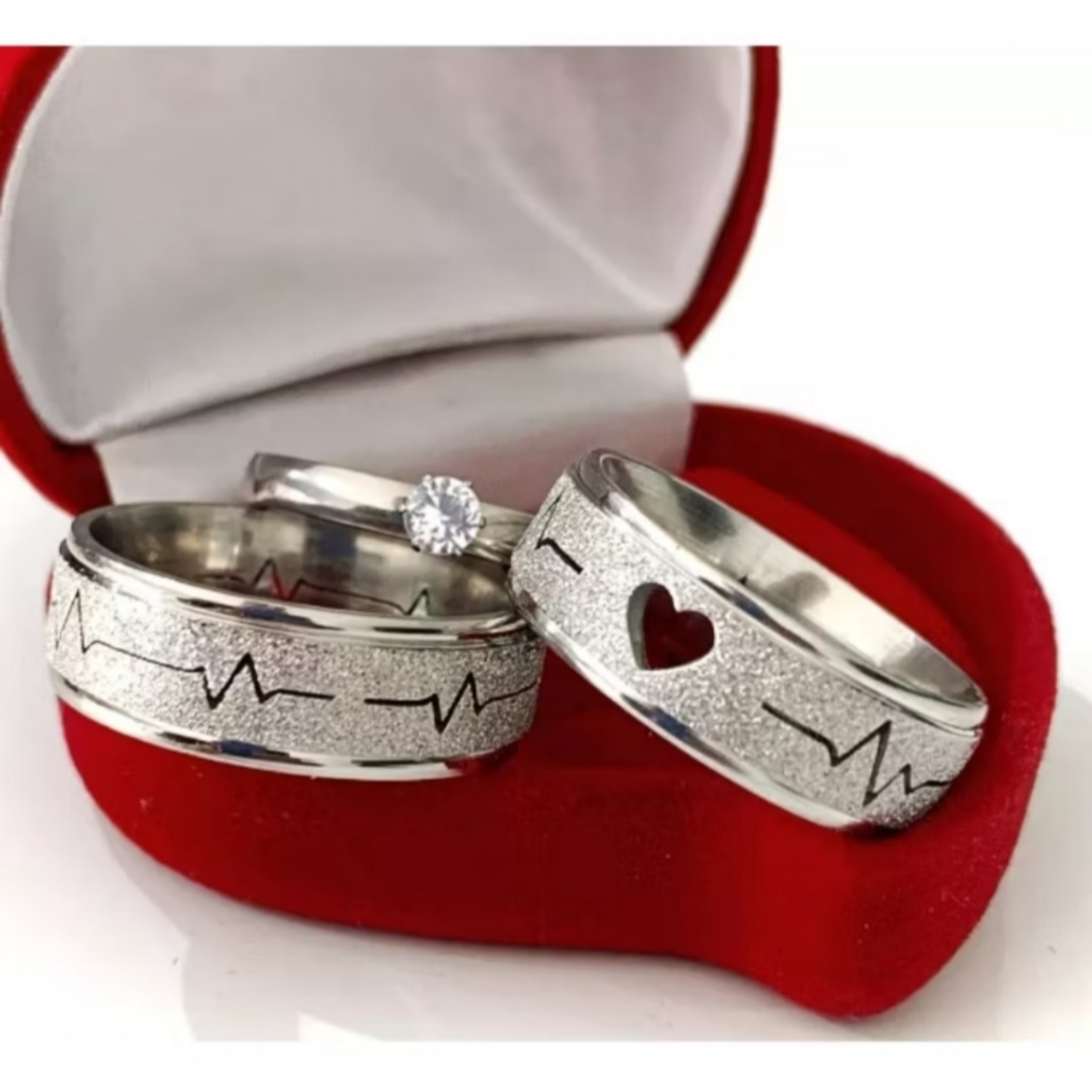 KIT Par De Aliança Namoro Banhada a Prata 925 Com Solitário Compromisso Batimento Coração Vazado