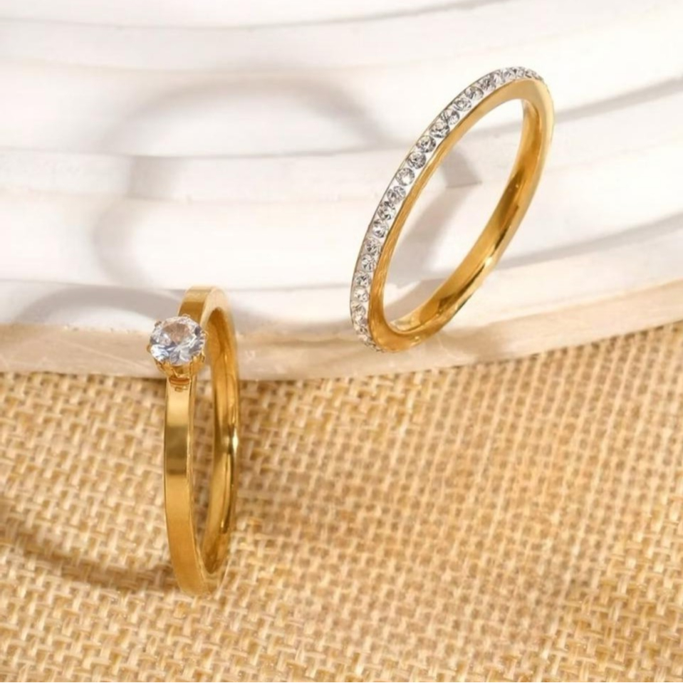 Kit Par De Anel Solitário Delicado Elegante Aço Inoxidável Refinado Pedra Em Cristal Brilhante