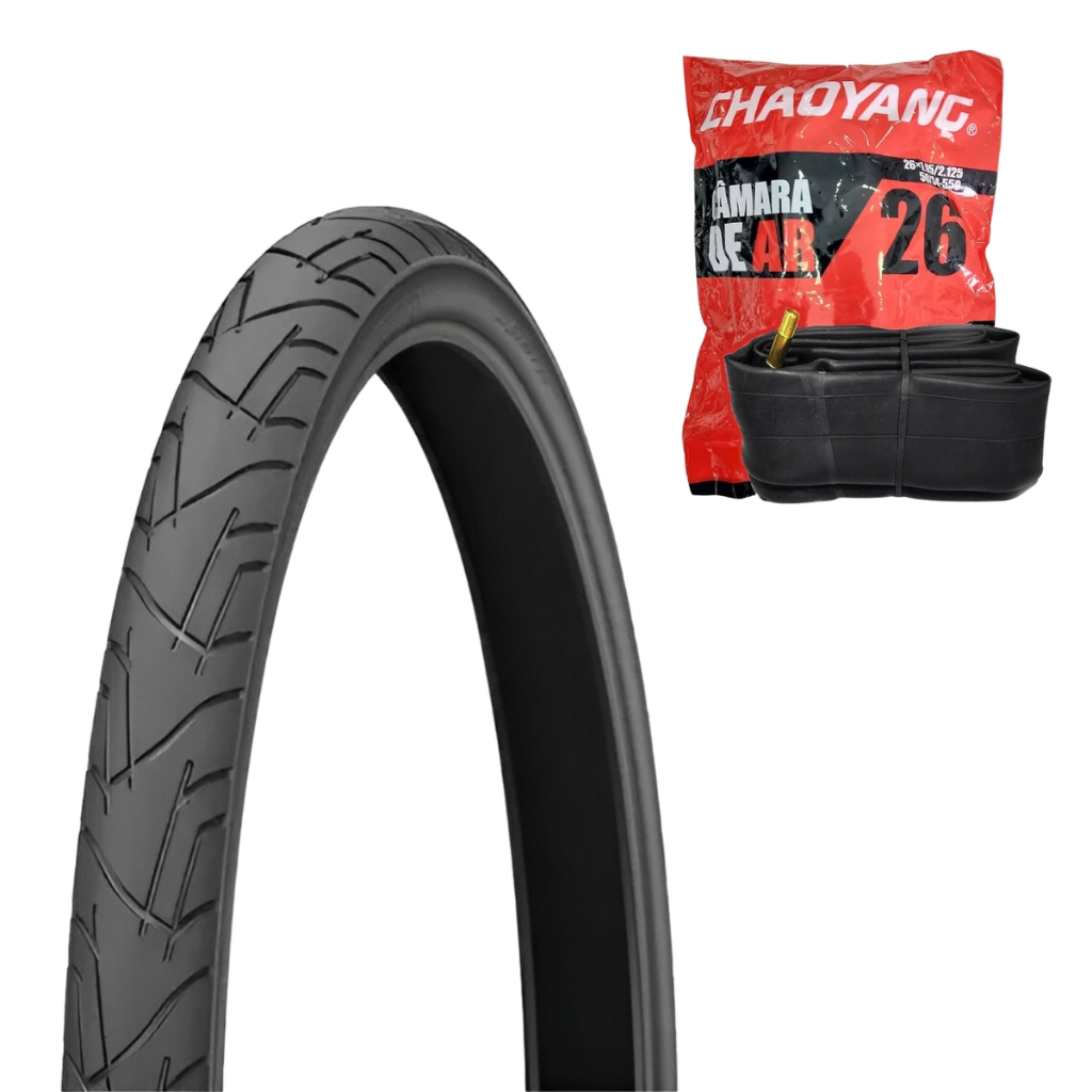 KIT PAR DE PNEU PRAIEIRO 26X1.95 + CAMARA 26 IMP SLICK Preto 50-559 ARO 26 Mountain Bike MTB