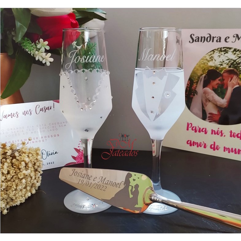 Kit Par De Taças E Espátula Personalizadas Casamento Noivado