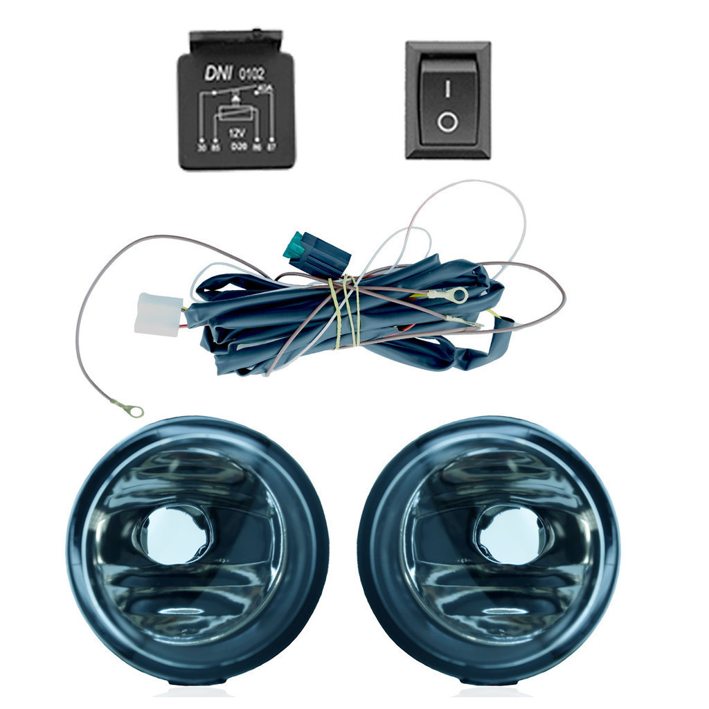 Kit Par Farol Milha Auxiliar Tiida 2007 2008 2009 2010 2011 2012 2013 Completo Botão Universal Lente Lisa Vidro