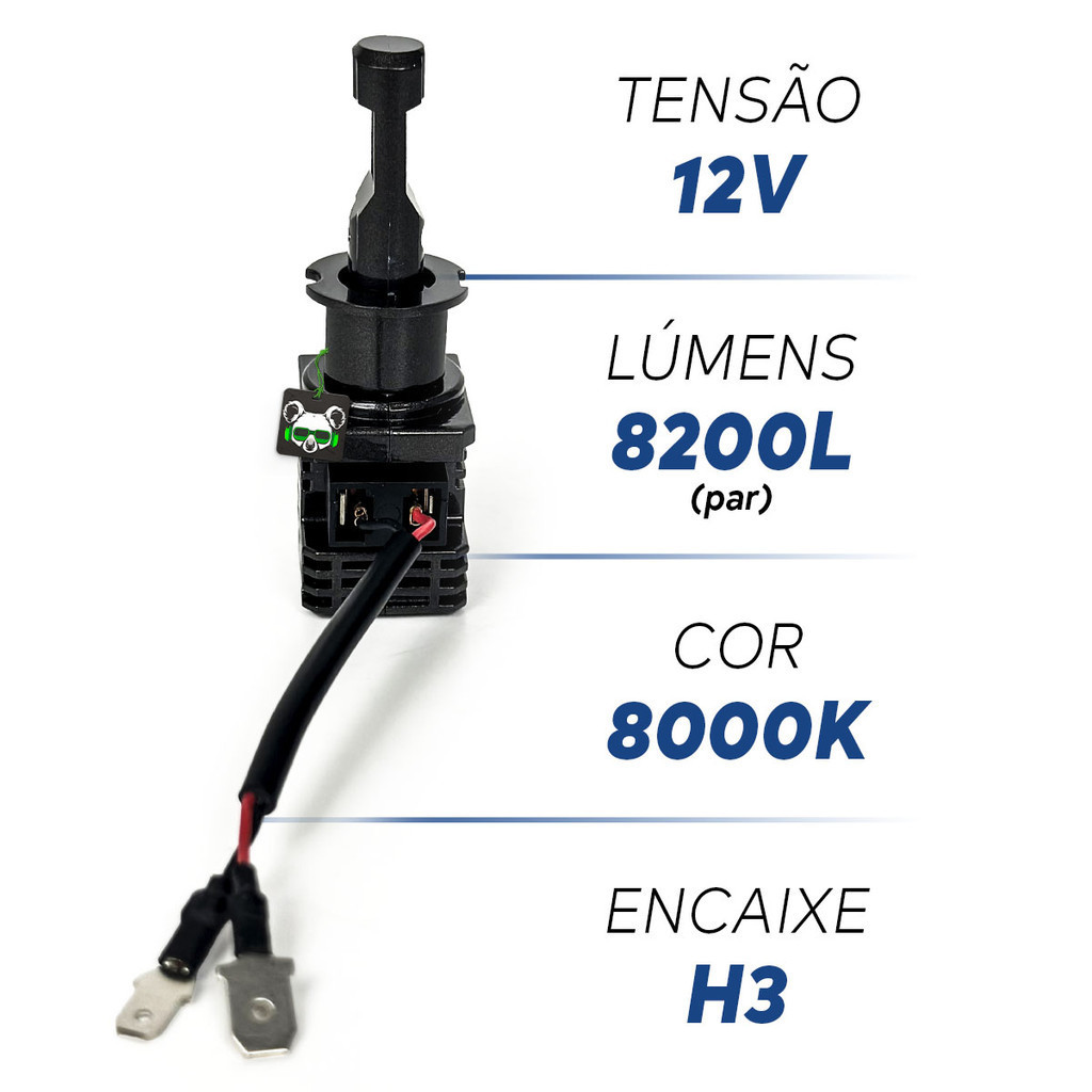 Kit Par Lâmpada Automotiva Ultra Led Force One 8000K 4100 Lúmens Encaixe Modelo H3 Tech One