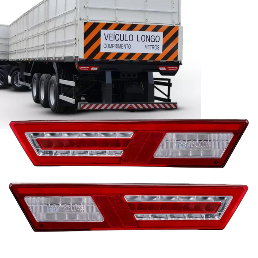Kit Par da Lanterna Traseira Led 1500 Modulus Bivolt Universal + Par Conector Chicote 5 Vias Lanterna Traseira Caminhões e Carretas Marca: Pradolux Codigo original: PL15000167 / PL15000267 Lado: Direito / Esquerdo Conector: 5 Vias Marca: Rainha das sete Codigo original: ETE7760 Aplicação: Universal Voltagem: Bivolt (12V e 24V) Lampada: Led Lado Esquerdo (Lado Motorista) Lado Direito (Lado Passageiro) Com desing inovador, a lanterna modulus possui um conjunto de 60 Leds automotivos, de excelente perfomance. Eles são posicionados estrtageicamente, permitindo um design slim e adaptável para diversas aplicações. • Lente de Acrílico com carcaça de plástico• Base na cor Preta Funções:• Posição - 25 Leds• Freio - 33 Leds• Ré - 12 Leds• Direcional- 14 Leds • Retrorrefletor de segurançaImportante:Valor do kit.Recomendamos que a instalação seja feita por profissional especializado e não nos responsabilizamos pelo mau uso do produto. Produto novo disponível á pronta entrega, envio imediato. Contém:02 Lanternas, 02 Conectores.