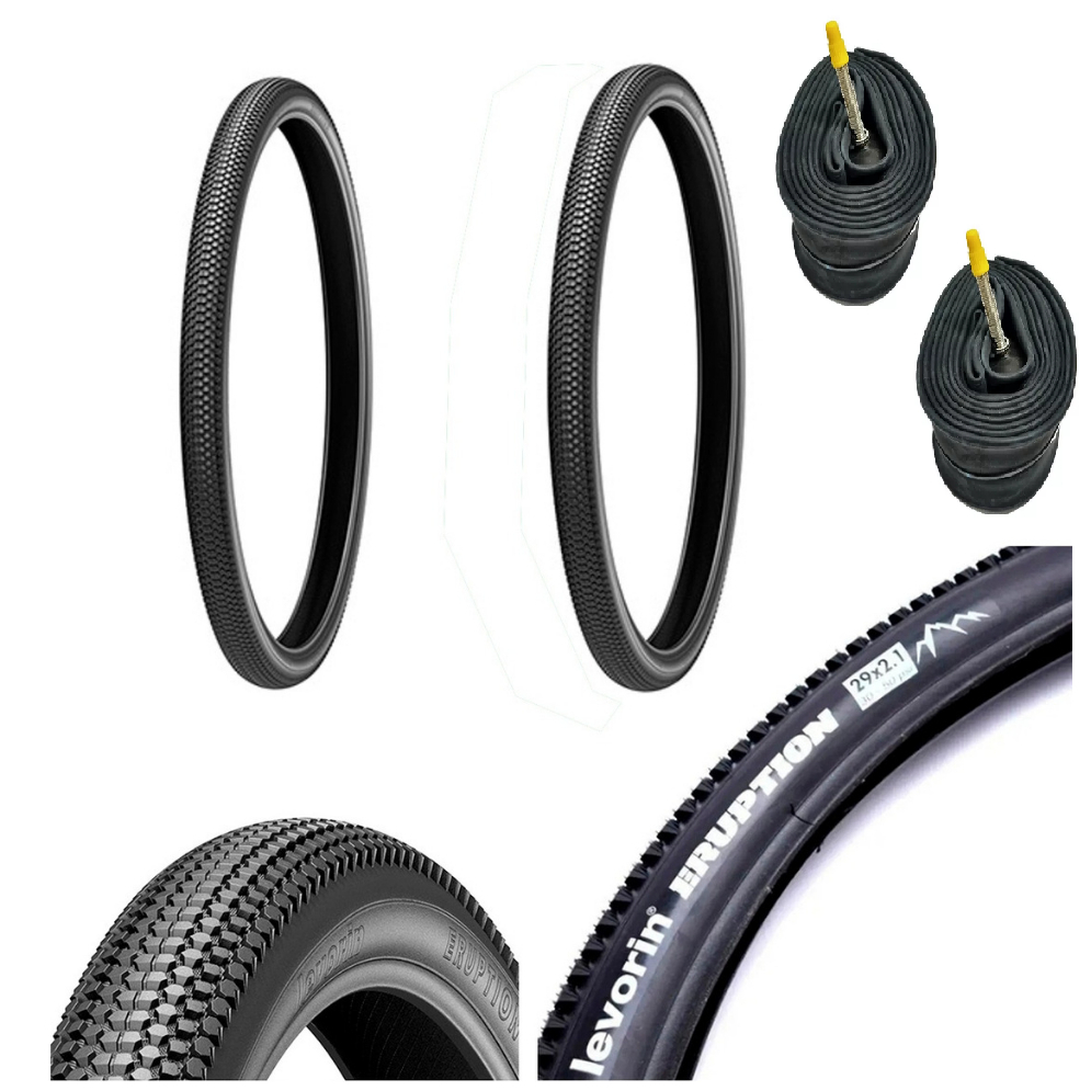 **ATENÇÃO** ANÚNCIO POSSUI VARIAÇÃO DE KIT, ESCOLHA A MAIS COMPÁTIVEL COM SUA NECESSIDADE NO ATO DE ADICIONAR AO CARRINHO. Pneu Aro 29 MTB Levorin Eruption 29 x 2.10 O companheiro ideal para suas aventuras de mountain bike Destaques do produto - Desenho agressivo para máxima tração durante acelerações e frenagens - Blocos laterais que garantem excelente aderência em qualquer terreno - Microtextura que otimiza a tração em solos arenosos e pouco profundos - Ideal para terrenos mistos, sólidos e macios Especificações técnicas - Medida: 29 x 2.10 - Pressão recomendada: 30 - 50 PSI - TPI (Threads Per Inch): 33 – mais resistência e durabilidade - Peso: 890 gramas – leve e eficiente - Modalidade: MTB – para alto desempenho nas trilhas - Estrutura: pneu com arame – robusto e seguro Informações adicionais sobre TPI e PSI - TPI: indica o número de fios por polegada no tecido do pneu. Um TPI de 33 proporciona maior robustez e resistência para enfrentar trilhas exigentes - PSI: a pressão recomendada varia entre 30 a 50 PSI. Ajuste conforme o terreno e seu estilo de pilotagem para obter conforto e performance ideais Benefícios extras - Ótimo desempenho em terrenos médios e desafiadores - Compatível com bikes elétricas Garanta já o seu Pneu Levorin Eruption e domine qualquer trilha com estilo e segurança Vai encarar o desafio? Vem com a RM BIKES