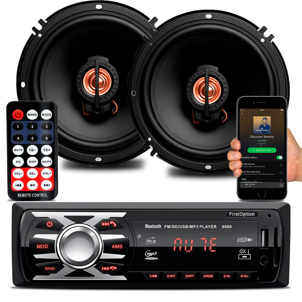 KIT SOM AUTOMOTIVO: ALTO-FALANTES 6 M60PRO 240W ou 5 M50PRO 200W + RÁDIO BLUETOOTH USB FIRST OPTION COM CONTROLE REMOTO Melhore o som do seu carro com potência, qualidade e conectividade! Este kit é ideal para quem busca uma experiência sonora superior com fácil instalação, compatibilidade ampla e excelente custo-benefício. ALTO-FALANTES M60PRO 6 (240W) OU M50PRO 5 (200W) Características Técnicas: - Tipo: Triaxial (som com excelente separação de frequências) - Potência: 240W (6") / 200W (5") - Impedância: 4 Ohms (compatível com a maioria dos sistemas automotivos) - Bobina em Kapton (resistente a altas temperaturas) - Diâmetro da bobina: 19mm - Conjunto magnético: 70x10mm (graves potentes) - Cone: Polipropileno injetado (leve e durável) - Chassis: Aço carbono (estrutura resistente) Benefícios: - Qualidade de som clara e precisa - Excelente desempenho em todas as frequências - Durabilidade elevada, mesmo em uso intenso - Design universal e fácil de instalar RÁDIO BLUETOOTH 6630BCN FIRST OPTION (1 Din) Principais Funções: - Conexão Bluetooth (músicas e chamadas sem fio) - Entradas USB, SD e auxiliar P2 - Reprodução de arquivos MP3 com busca por pastas - Display LED com botões iluminados em vermelho - Relógio no display - Compatível com comandos de volante (SWC) - Saída RCA e para subwoofer - Pré-equalização: Pop, Rock e Clássico - 4x25W RMS - Rádio FM com memória para 18 estações - Dimensões: 18 x 5 x 9 cm - Alimentação: 12V COMPATIBILIDADE DOS ALTO-FALANTES 6 Polegadas Portas Dianteiras e Traseiras: Ampla compatibilidade com veículos das marcas Chevrolet, Citroën, Fiat, Ford, Honda, Hyundai, Kia, Mitsubishi, Nissan, Renault, Toyota e Volkswagen. Exemplos: - Onix, Cruze, S-10, Cobalt - Civic, Fit, HR-V - HB20, Creta, Tucson - Fox, Polo, Jetta, T-Cross - Duster, Logan, Sandero (E muitos outros. Veja a lista completa ou consulte pelo campo de perguntas.) 5 Polegadas Portas Dianteiras e Traseiras: Compatível com modelos como: - Celta 2P/4P - Prisma - Escort - Gol G2, G3, G4, G5 - Renault Clio, Sandero, Megane - Audi A3, A4, A6, A8 (Verifique compatibilidade detalhada ou consulte suporte.) CONTEÚDO DA EMBALAGEM - 01 Par de Alto-falantes (6" ou 5") - 01 Rádio Bluetooth USB First Option com controle remoto Importante - Garantia de 03 meses; - Pedidos aprovados até 12h00 de segunda a sexta será enviada no mesmo dia; - Enviamos em até 24h úteis; - A embalagem pode variar de acordo com o estoque do fabricante; - Imagens meramente ilustrativas; - A cor do produto pode variar de acordo com a tela do seu smartphone ou computador; - Utilize o campo de "Perguntas e respostas" e esclareça suas dúvidas com nosso suporte técnico. DICA IMPORTANTE: Caso seu veículo não esteja na lista, envie sua pergunta com o modelo e ano nossa equipe indicará a versão compatível para você! Adquira agora e transforme seu som automotivo com praticidade, potência e qualidade!