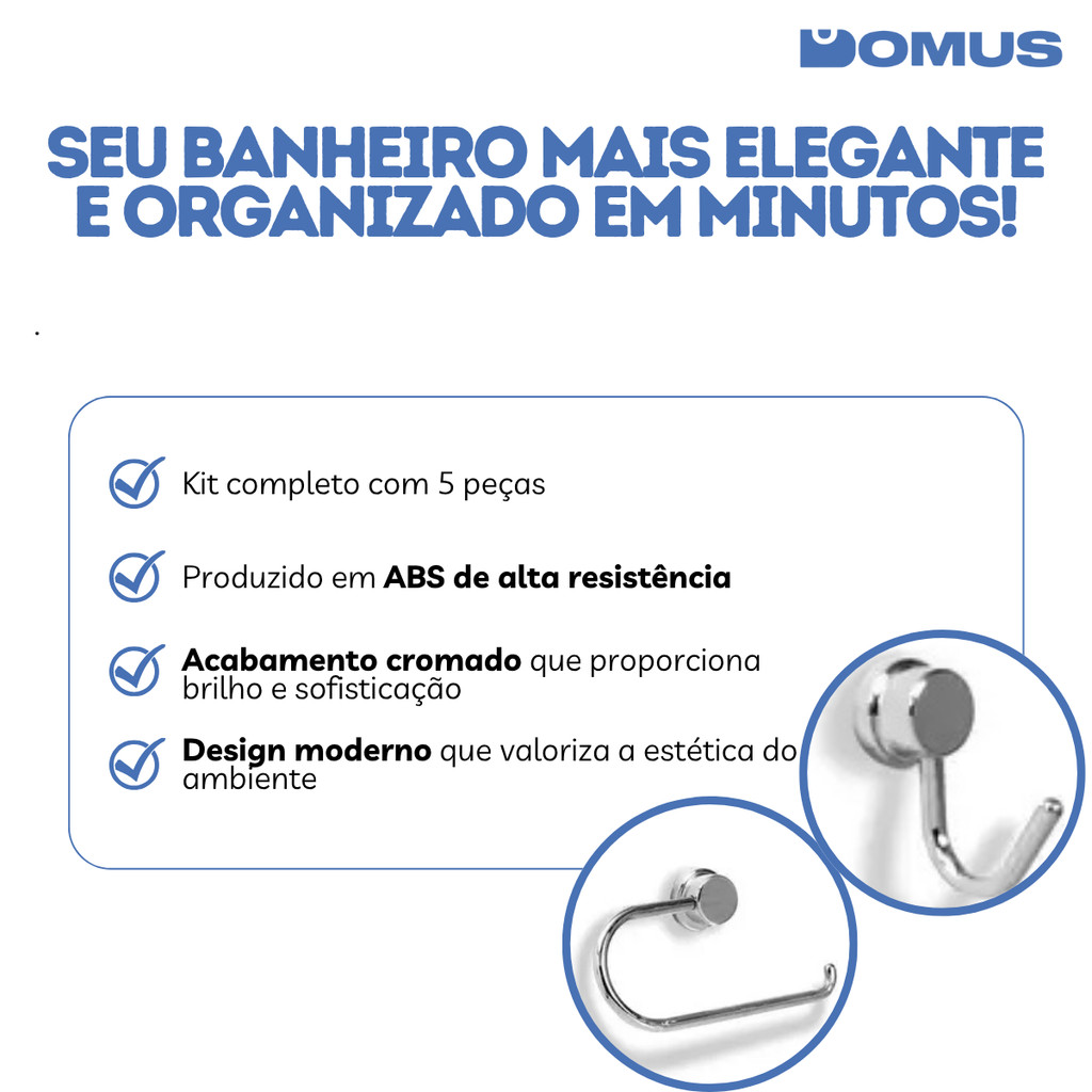 ***PRODUTO A PRONTO ENTREGA COM ENVIO IMEDIATO*** ITEM ORIGINAL COM NOTA FISCAL Somos a Domus, Loja oficial da Shopee. Temos 5 anos de experiência em E-Commerce e nosso maior objetivo é garantir a satisfação dos nossos clientes! Kit para Banheiro Rio com 5 Peças em ABS Cromado – Higiban | Organização e elegância para seu ambiente. O Kit para Banheiro Rio da Higiban traz praticidade, resistência e um toque sofisticado para seu banheiro. Produzido em ABS com acabamento cromado, oferece alta durabilidade, fácil limpeza e visual moderno. Ideal para quem busca funcionalidade sem abrir mão da estética, o conjunto inclui 5 peças essenciais para manter o ambiente organizado e elegante. Destaques do produto: Conjunto com 5 peças para completa organização do banheiro Material em ABS com acabamento cromado, garantindo durabilidade e design moderno Fácil instalação, com fixação segura e prática Resistente à umidade, ideal para uso diário em banheiros residenciais ou comerciais Informações técnicas: Marca: Higiban Modelo: Linha Rio Material: ABS com acabamento cromado Quantidade de peças: 5 Peças inclusas: Porta-toalha barra, porta-toalha argola, saboneteira, papeleira e cabide simples Cor: Cromado Conteúdo da embalagem: 1 Porta-toalha barra 1 Porta-toalha argola 1 Saboneteira 1 Papeleira 1 Cabide simples Parafusos e buchas para fixação Produto original com garantia Garantia de 3 meses. Transforme seu banheiro com praticidade e estilo. Adquira já seu kit Higiban!