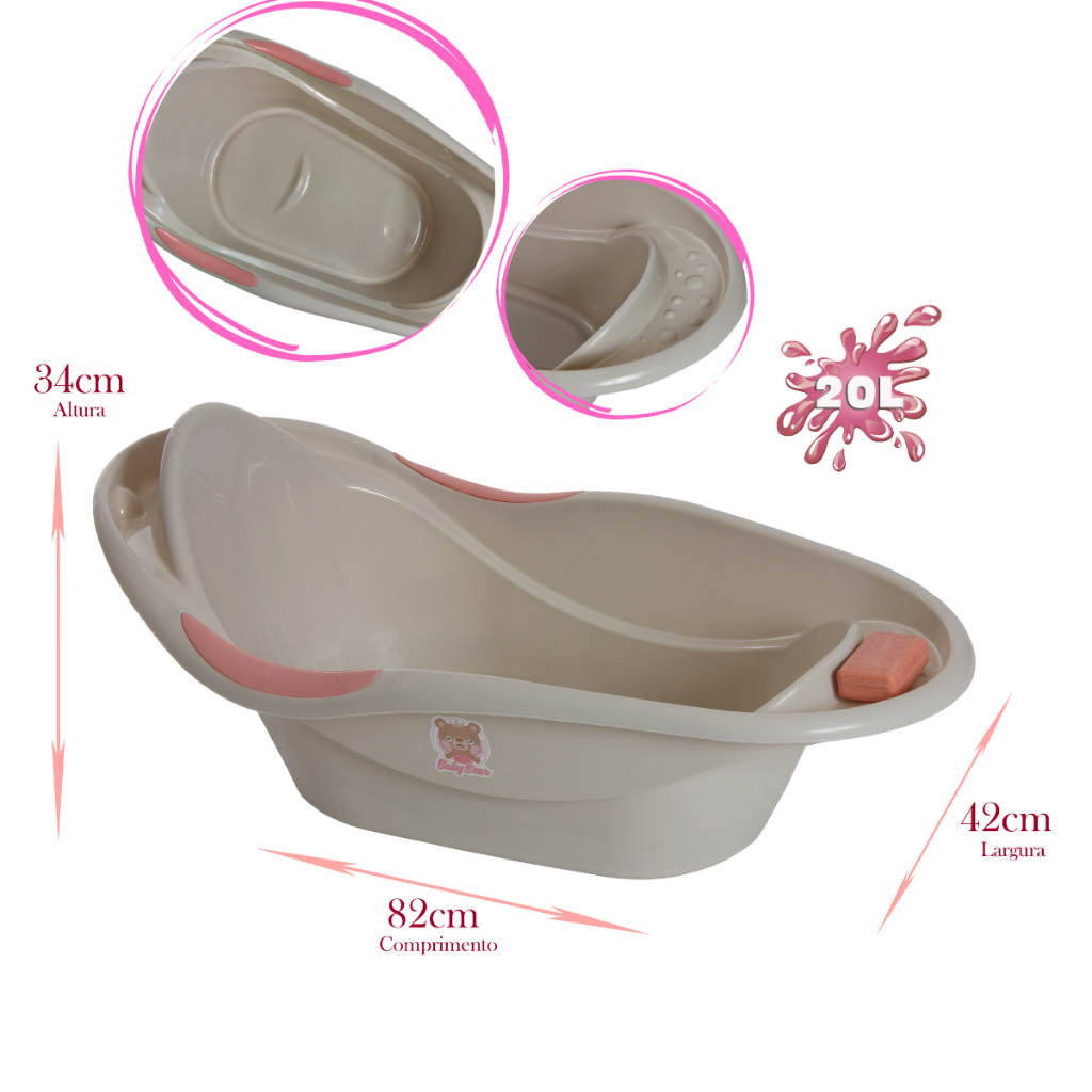 Kit Para Banho Quarto Bebê Baby Menino Menina Banheira Saboneteira Cesto E Lixeiras Rosa