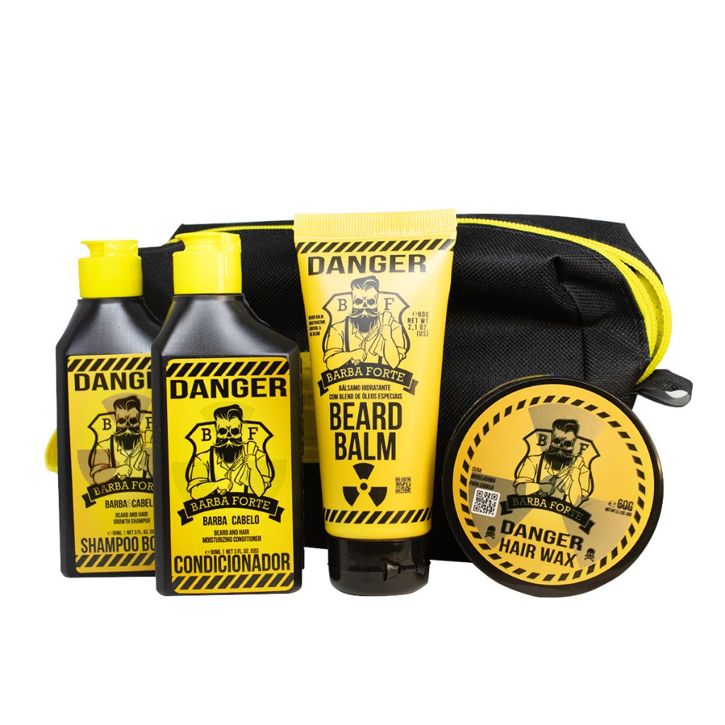 Kit para Barba Danger Barba Forte Necessaire Viagem - Shampoo + Cond + Balm de Barba + Pomada Cabelo