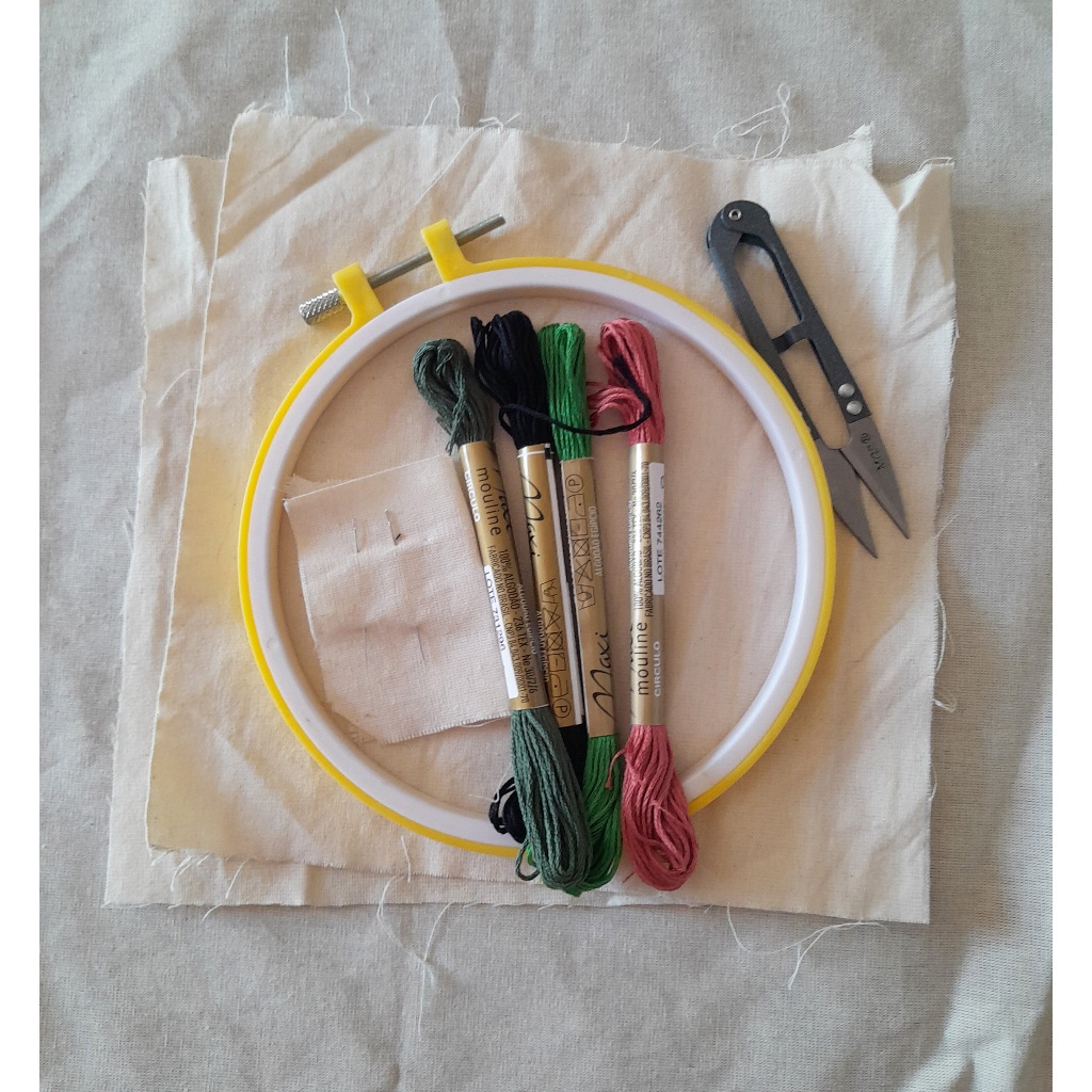 Incluso no kit COMPLETO: Desenho impresso com guia de pontos Bastidor tam. 16cm Agulha nº9 e nº 7 Tesoura para cortar linhas 4 cortes de tecido algodão crú 4 meadas de linhas de cores sortidas Guia digital explicando passo-a-passo de forma ilustrada 4 pontos, como passar o desenho para o tecido, explicação dos materiais e 10 riscos extras para bordar (arquivo digital) O arquivo digital é enviado após o recebimento do produto Opção apenas com desenho. linhas e 2 cortes de tecido para quem já tem o restante dos materiais e quer uma nova opção de desenho para bordar