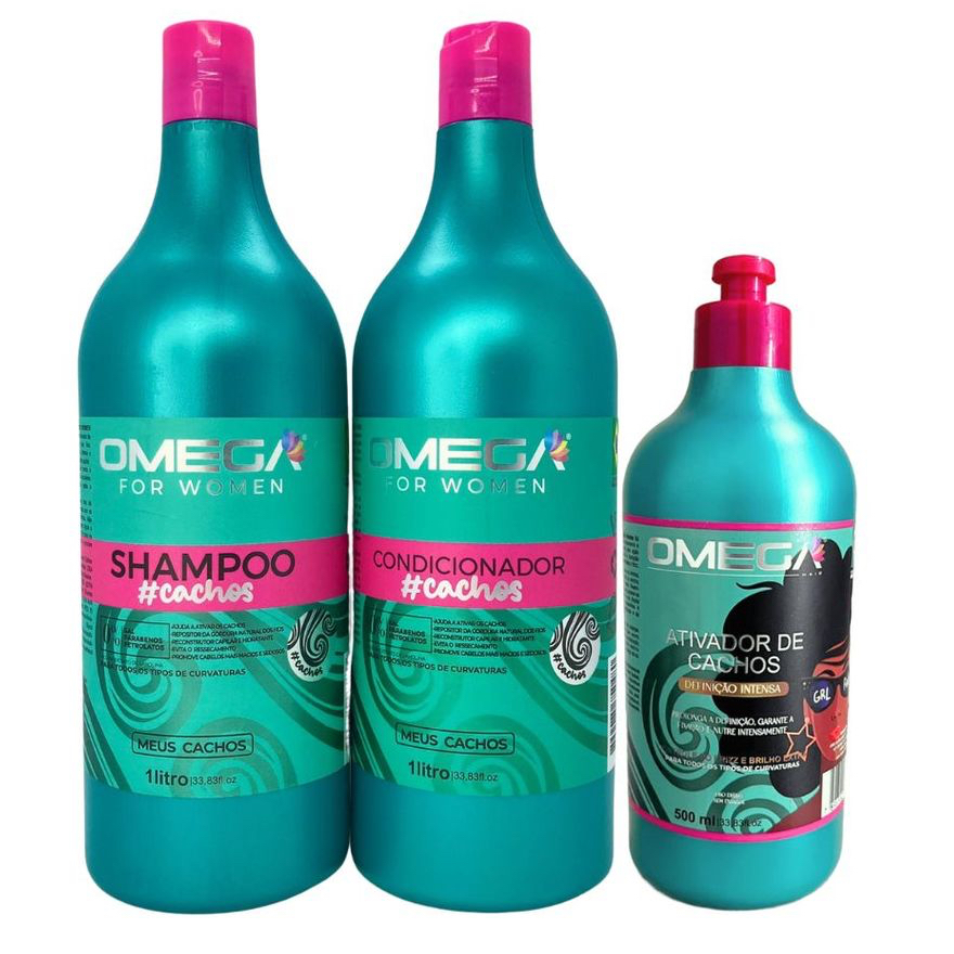 Kit para Cabelo Cacheado Shampoo e Condicionador 1L + Ativador de Cachos Omega Hair