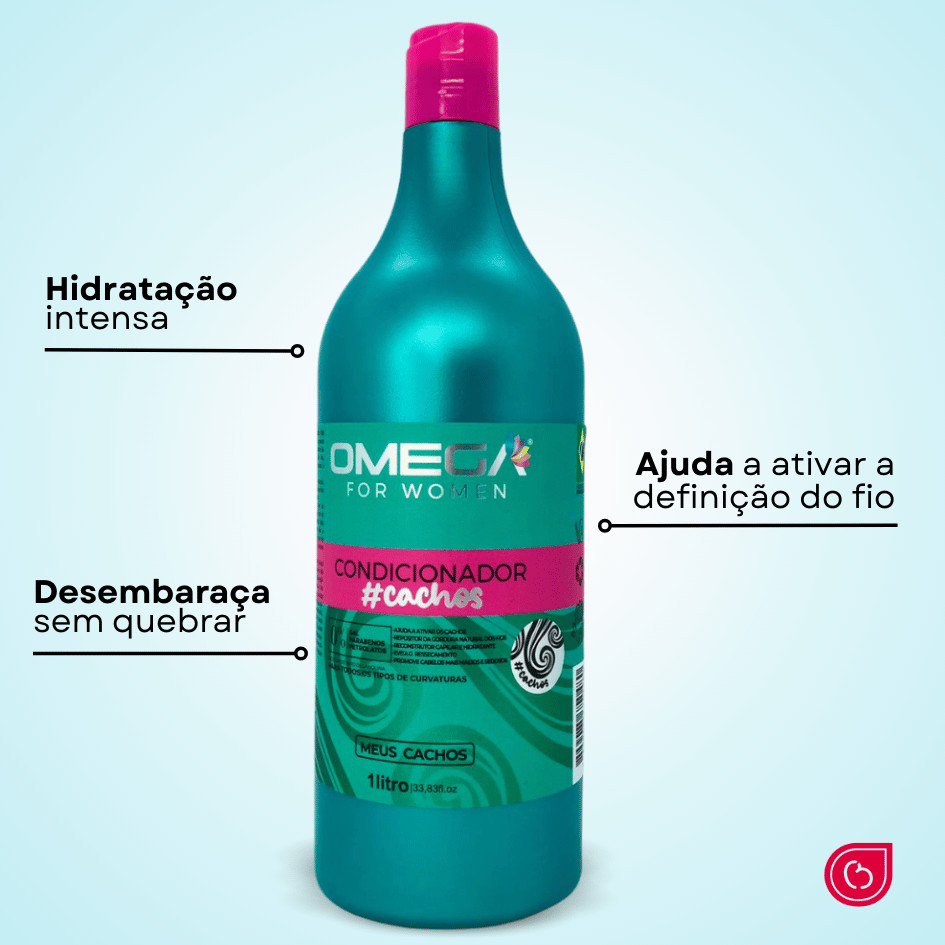 Kit Ativador de Cachos Shampoo e Condicionador 1L + Ativador Omega Hair O Kit Cachos Omega Hair foi desenvolvido para proporcionar limpeza equilibrada, hidratação intensa e definição tensão , valorizando a curvatura natural dos fios. Sua fórmula auxilia na formação de cabelos mais modelados, com brilho, maciez e controle do frizz, sem deixar aspecto pesado ou rígido. Ideal para quem busca um tratamento completo com rendimento profissional em casa. Com a combinação do Ativador de Cachos, os fios ficam mais nutridos, disciplinados e com acabamento impecável. Principais benefícios • Definição intensa e tensão • Redução do frizz • Hidratação profunda • Controle de volume • Cachos mais soltos e naturais • Brilho intenso • Óleo multifuncional para cabelo e corpo Indicação • Cabelos ondulados • Cabelos cacheados • Cabelos crespos • Fios ressecados ou com frizz Pode ser utilizado em rotinas de cronograma capilar na etapa de hidratação/nutrição. Modo de Uso Shampoo Cachos 1L: Aplique nos cabelos molhados, massageando suavemente até formar espuma. Enxágue. Repita se necessário. Condicionador Cachos 1L: Aplique no comprimento e pontas. Deixe agir por alguns minutos e enxágue completamente. Ativador de Cachos 500ml: Com os cabelos úmidos, aplique quantidade suficiente e modele amassando os fios de baixo para cima. Não enxágue. Conteúdo do Kit • 1 Shampoo Cachos Omega Hair – 1L • 1 Condicionador Cachos Omega Hair – 1L • 1 Ativador de Cachos Omega Hair – 500ml