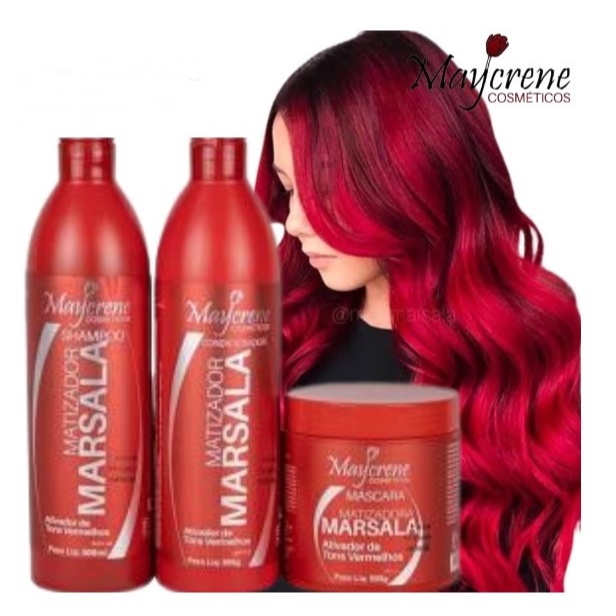 Kit Para Cabelos Vermelhos Matizador Marsala Maycrene - Shampoo - Condicionador - Máscara- Vermelhos