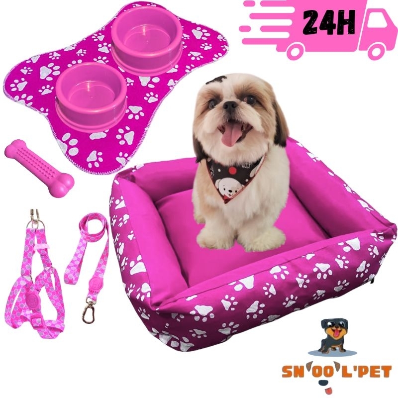 Kit Para Cachorro Super Premium Pequeno Cama Pet Comedouro Para Cães