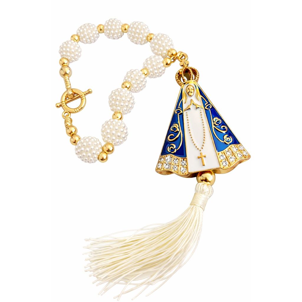 kit Para Carro Lindo De Nossa Senhora Aparecida Terço Dezena De Retrovisor Mais Enfeite De Painel