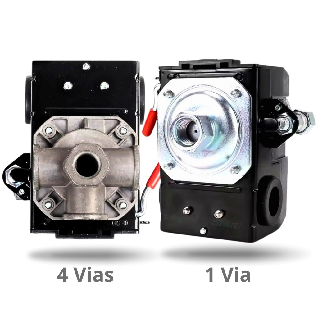 Kit Para Compressor Baixa Pressão Com Pressostato 80/120 PSI 4 Vias Manômetro e Válvula de Segurança