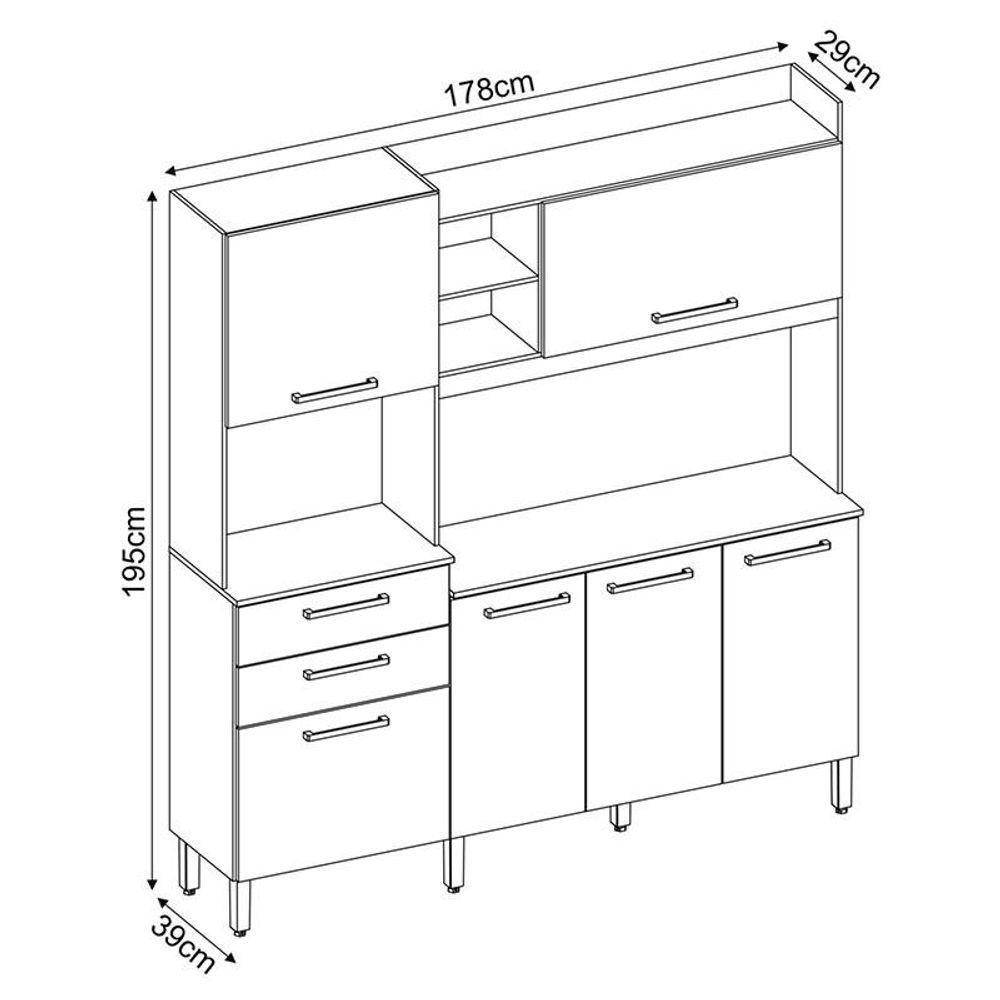 Kit Para Cozinha Select Amendola Branco - Demóbile Kit para Cozinha Select Amendola Branco - Demóbile Sabe aquele armário com qualidade e preço baixo para renovar a cozinha? Em parceria com a Demóbile desenvolvemos o Kit para Cozinha Select para você que não tem muito espaço, mas quer uma cozinha moderna e organizada, a praticidade e inovação que falta no seu lar, confira as características técnicas e aproveite. Características Técnicas: - Desenvolvida em MDP - 6 portas e 2 gavetas - Espaço para microondas - Corrediças metálicas - Puxadores na cor champanhe - Pés com regulagem - Interna com prateleiras e compartimentos bem divididos - Não necessita furar a parede -Lindo design Dimensões: Altura: 195 cm Largura: 178 cm Profundidade: 39 cm Obs: Não realizamos a montagem dos produtos, porém acompanha manual de instruções.