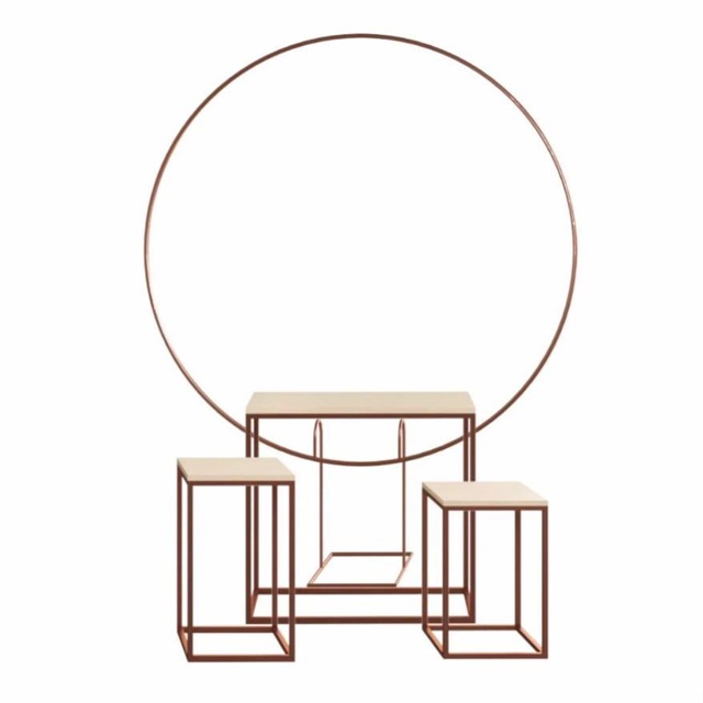 Kit para Decoração de Festa c/ 3 Mesas Cubo e 1 Arco Rose Gold, Dourado, e Preto